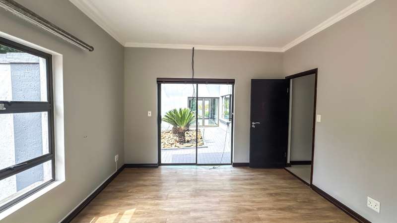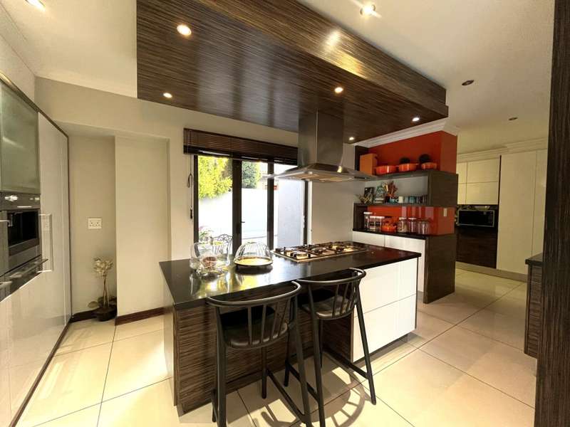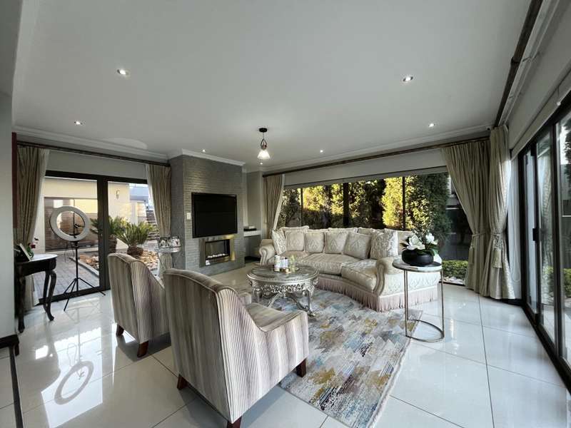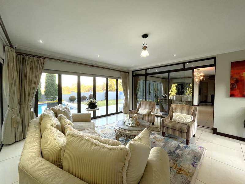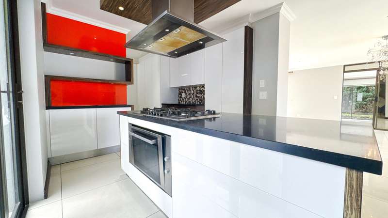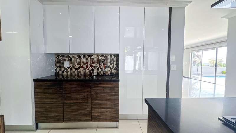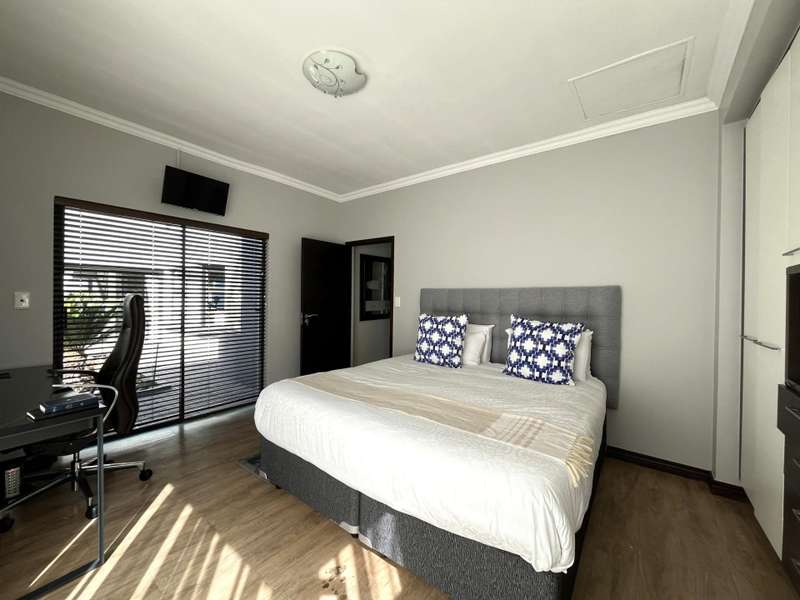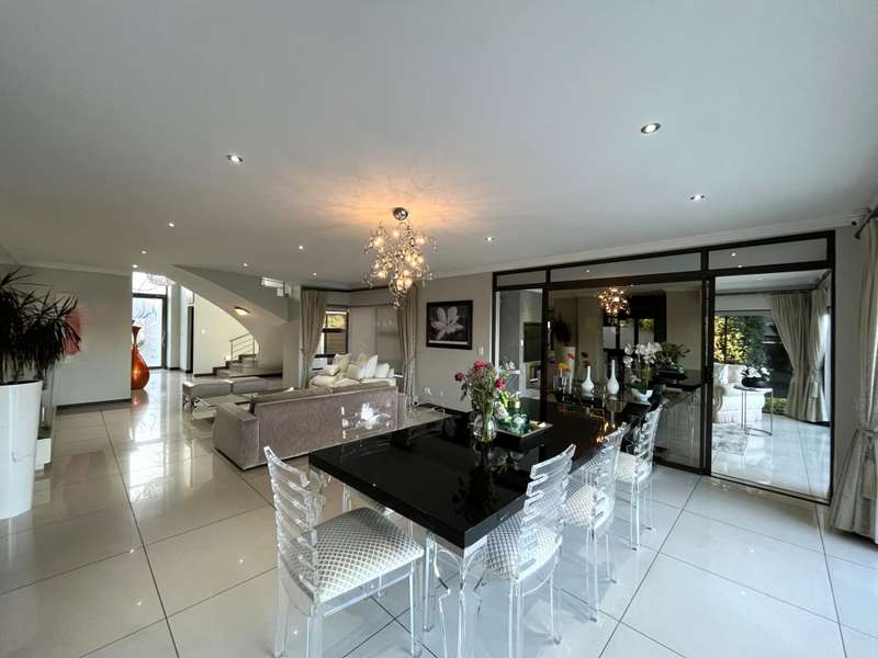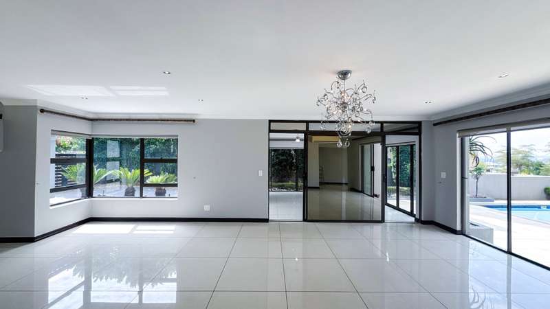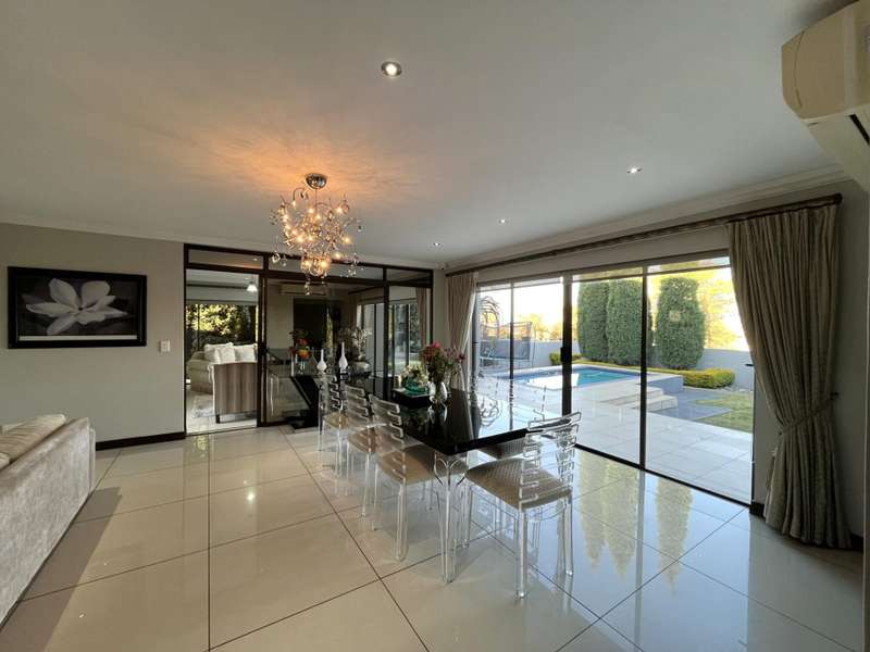Welcome to this spacious and 6 bed house in popular Midlands Estate. As you enter the double volume entrance, kitchen with a huge Island on your right. The Kitchen has build in Smeg Appliances including a Coffee Machine, there is also a build in Fridge and Freezer. The open plan living and dining area are next to the kitchen. There is another lounge in the ground floor which is connected to a separate bedroom with en-suite and there is another bedroom with en-suite on the left wing of the house. The enclosed Patio is next to the main living room. First Floor: As you climb up the stairs you enter an open Pijama Lounge and 3 en-suited bedrooms. The main bedroom with own en-suite has large bathroom and plenty cupboards. The large landscaped garden with a sparkling for entertainment looking over the park. Features Include: Integrated Kitchen appliances (Fridge, Freezer, Coffee Machine) 2 Ovens Aircon Units in Main bedroom and living /entertainment area Inverter System - 5KW Sunsynk Lithium Batteries 5.5KW Scenic View Living Areas: 4 Study: Yes of Sixth Bedroom Servants Quarters: Yes with fully equipped Bathroom Pool: Yes Transfer Costs: Transfer Duty Area: Midlands Patio: Enclosed with stack doors This house offers more per square meter. Contact me to view today.