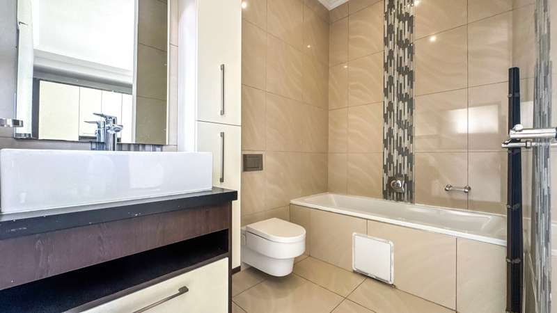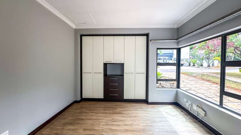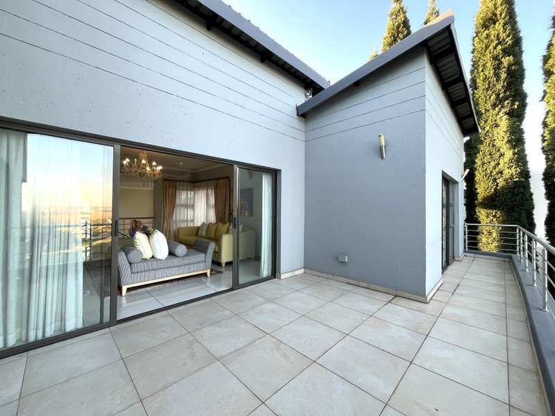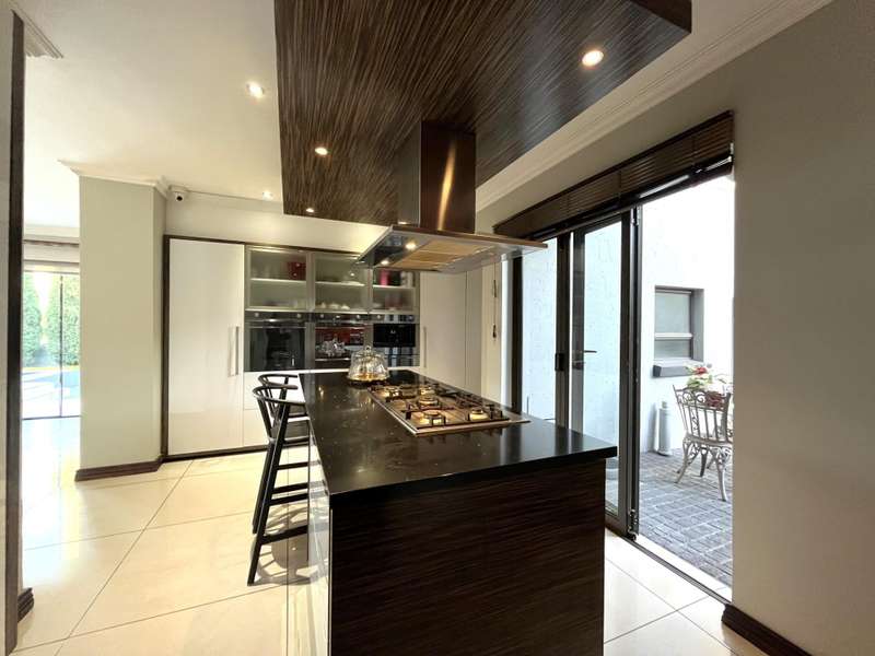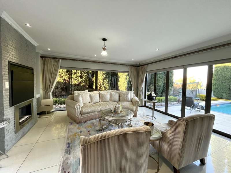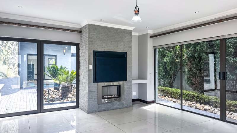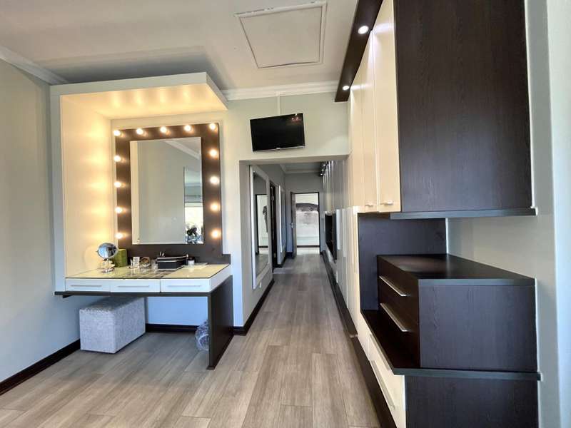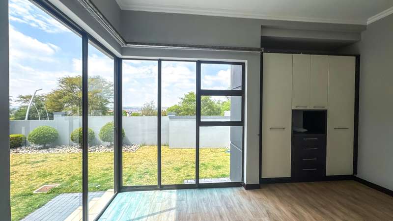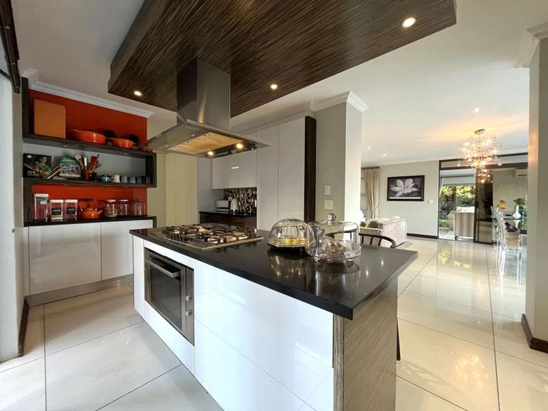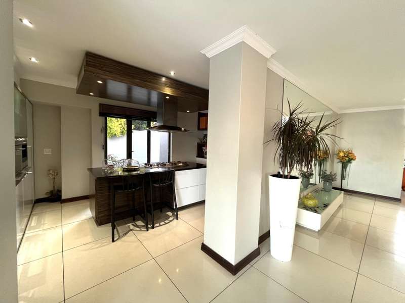 Welcome to this spacious and 6 bed house in popular Midlands Estate. As you enter the double volume entrance, kitchen with a huge Island on your right. The Kitchen has build in Smeg Appliances including a Coffee Machine, there is also a build in Fridge and Freezer. The open plan living and dining area are next to the kitchen. There is another lounge in the ground floor which is connected to a separate bedroom with en-suite and there is another bedroom with en-suite on the left wing of the house. The enclosed Patio is next to the main living room. First Floor: As you climb up the stairs you enter an open Pijama Lounge and 3 en-suited bedrooms. The main bedroom with own en-suite has large bathroom and plenty cupboards. The large landscaped garden with a sparkling for entertainment looking over the park. Features Include: Integrated Kitchen appliances (Fridge, Freezer, Coffee Machine) 2 Ovens Aircon Units in Main bedroom and living /entertainment area Inverter System - 5KW Sunsynk Lithium Batteries 5.5KW Scenic View Living Areas: 4 Study: Yes of Sixth Bedroom Servants Quarters: Yes with fully equipped Bathroom Pool: Yes Transfer Costs: Transfer Duty Area: Midlands Patio: Enclosed with stack doors This house offers more per square meter. Contact me to view today.