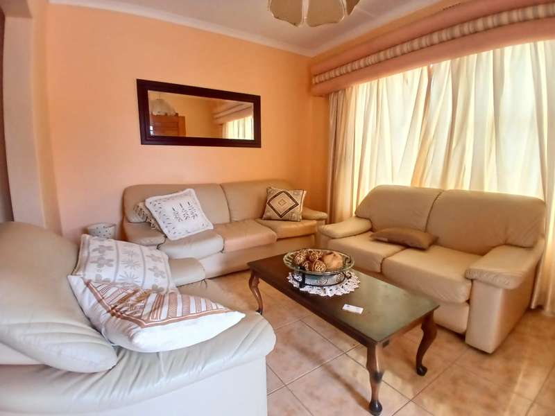 Welcome to this well-maintained 3-bedroom, 2-bathroom family home, perfect for comfortable living and effortless entertaining. The heart of the home features an open-plan lounge and dining area that flows seamlessly, ideal for family gatherings or relaxed evenings. A separate family room offers additional space for a TV lounge, kids' playroom, or home office. The kitchen is fully equipped with built-in cupboards, a double eye-level oven, hob, and extractor fan — perfect for the home chef. A dedicated laundry area adds extra convenience. Outdoors, a spacious carport comfortably accommodates up to 3 vehicles, with additional parking available. The property is fully fenced and fitted with burglar bars and an alarm system, ensuring safety and peace of mind for your family. This home combines practicality, comfort, and security — ready for you to move in and make it your own.