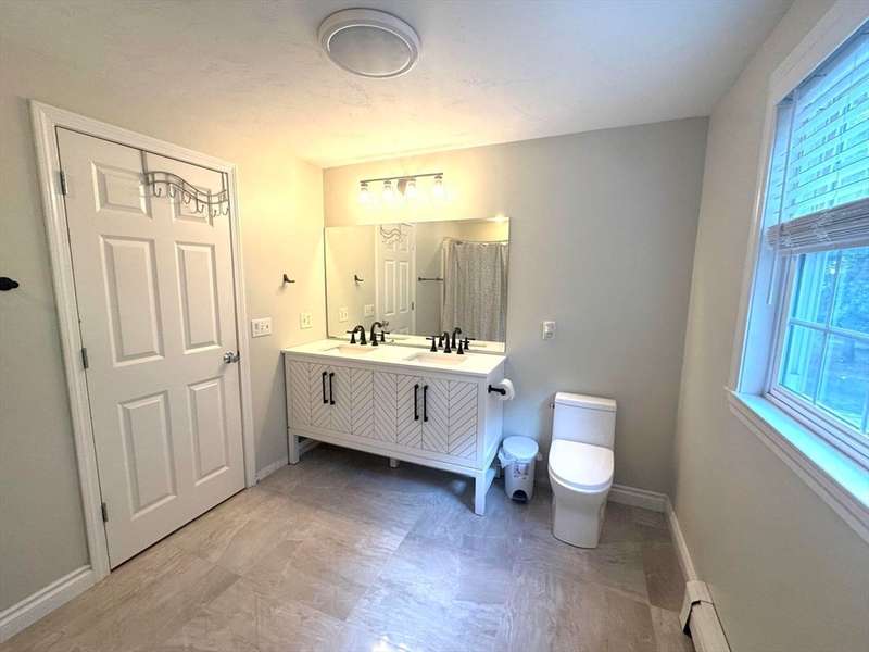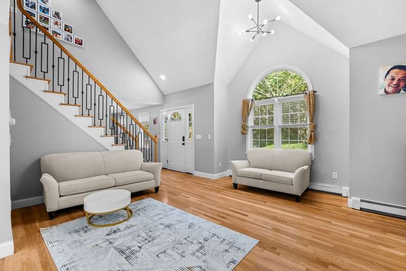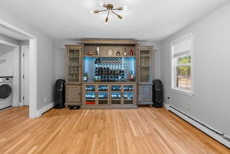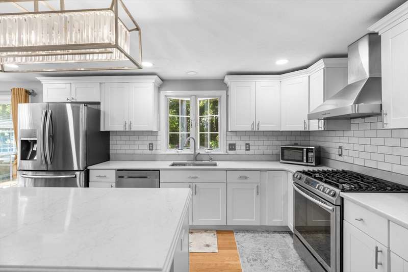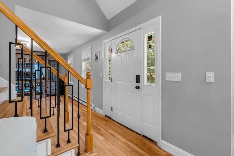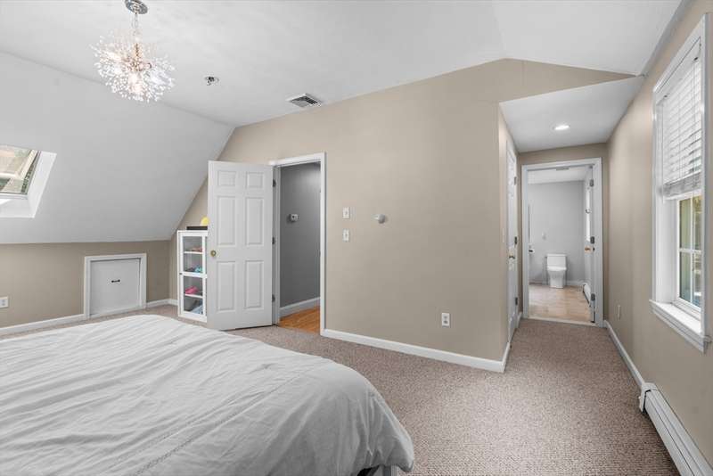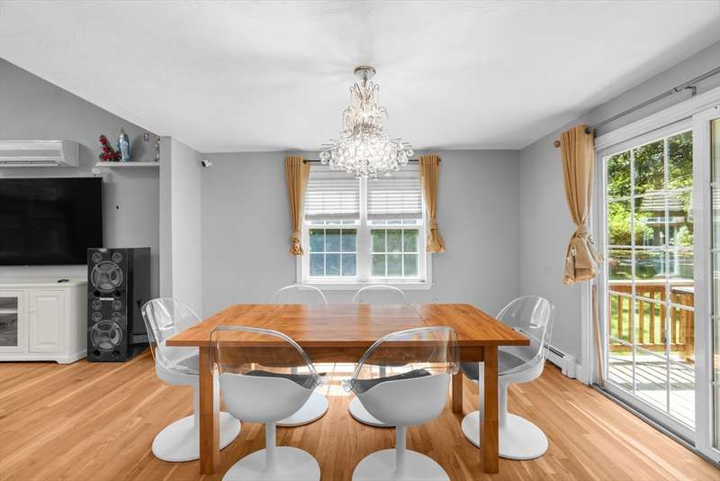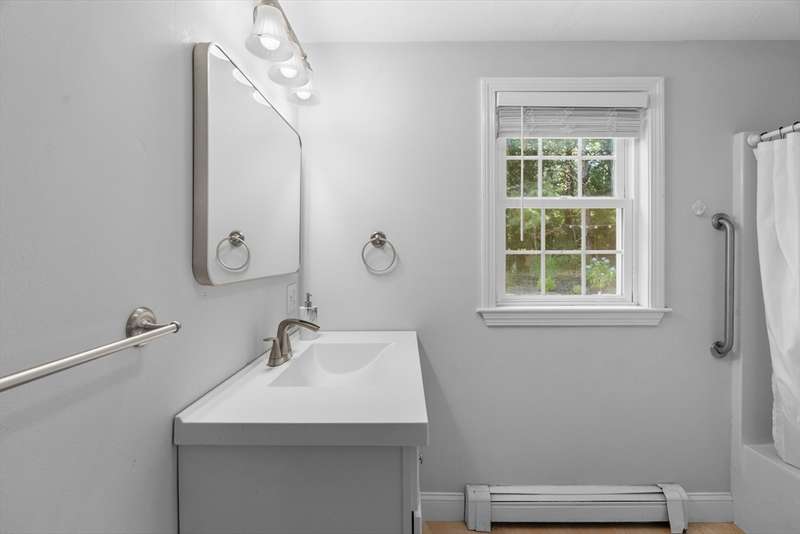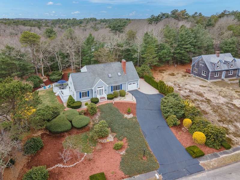 Hidden Gem!! Sunny palladium Cape style house with almost 1 acre of land! The first floor offers a nice bright kitchen with stainless steel, quartz counters, large island for entertaining or breakfast bar. Slider off the dining room leads out to the manicured back yard & decking. Great space for BBQ'S. Living room has vaulted ceiling & great open floor plan. Whole house has A/C! This level also has a spacious room which could be used as a den/office. Recreate the 1st level space & have room for sleeping arrangements on the 1st floor. Wood flooring throughout this level, 1st floor laundry, one full bathroom. Second floor offers a very large primary bedroom with bathroom access and two additional bedrooms as well. The basement is partially finished with two rooms to use for games, office, overflow etc. Level lot with professional landscaping & irrigation, outside shower, shed for storage, garden space etc. A must see!!