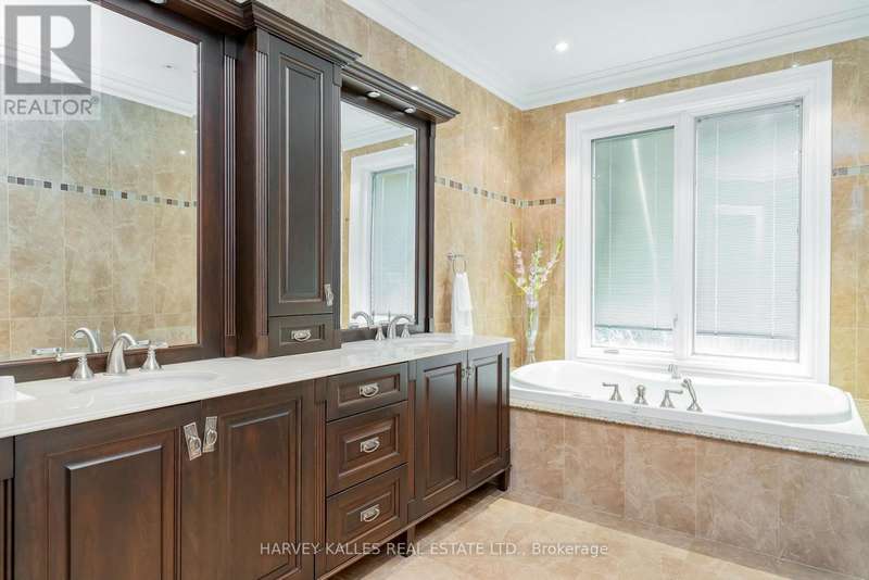 Rare, stunning custom-built bungalow nestled in one of Mississauga's most sought-after neighbourhoods. Set on an impressive 75' x 200' lot, this elegant home blends timeless craftsmanship with modern comfort. Step inside to discover soaring ceilings, crown moulding, coffered ceilings, wainscoting and decorative pillars that bring a touch of sophistication throughout. The sunken family room features a cozy gas fireplace and multiple bay windows flood the space with natural light. The spacious kitchen offers a walkout to a large composite deck - perfect for entertaining or relaxing in the private backyard oasis complete with an interlocked patio and outdoor jacuzzi. The primary suite boasts a luxurious ensuite with a jacuzzi tub and beautiful finishes. Enjoy a separate entrance to the tall, open-concept basement offering endless potential for extended family or future customization. A three-car garage, interlocked driveway, and two gas fireplaces complete this exceptional property. The home features a large Nanny's quarter. Custom-built with pride of ownership evident. Many extras included. Close to schools, transportation and all amenities. Just show and sell!" (id:6370)