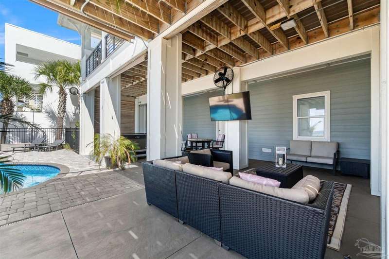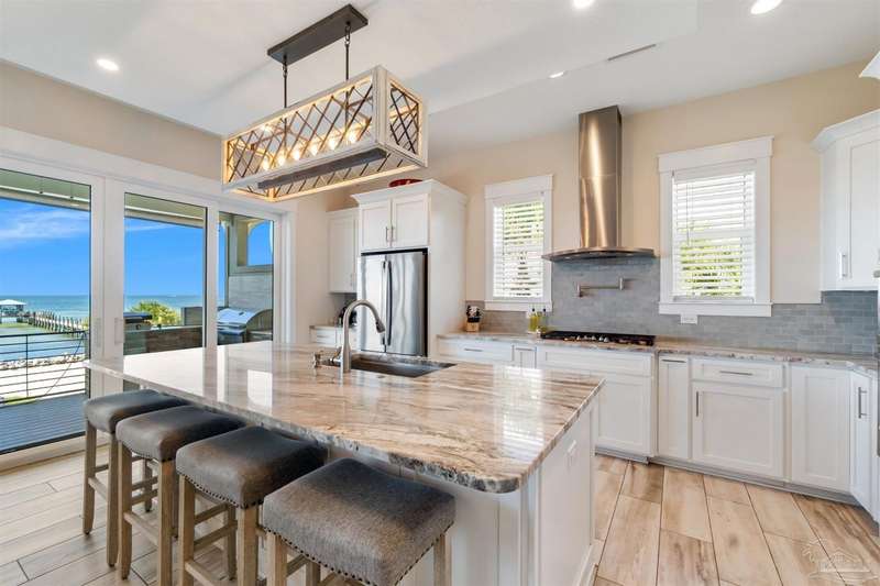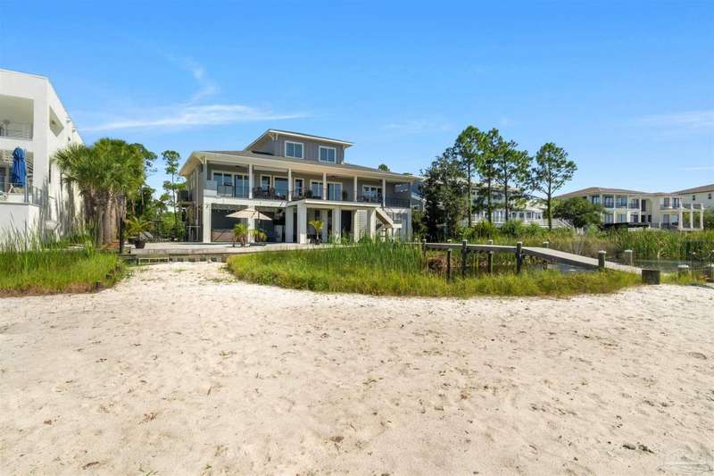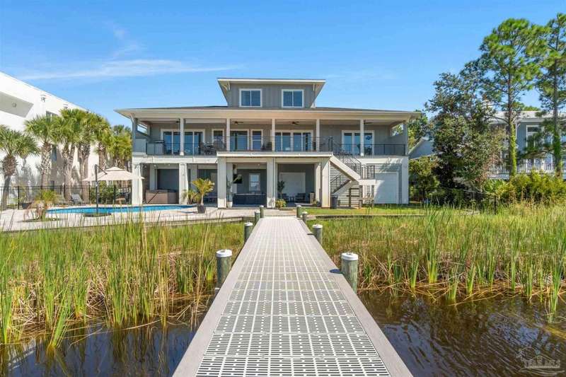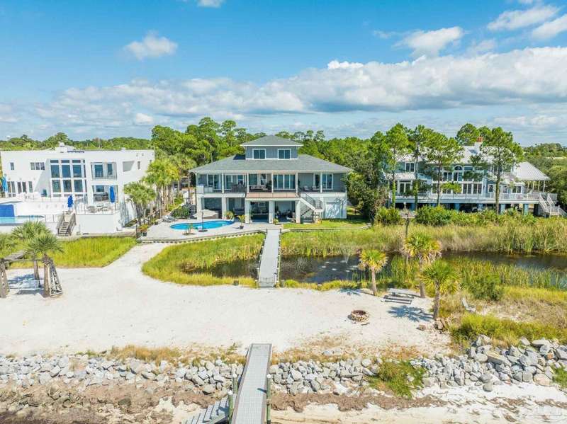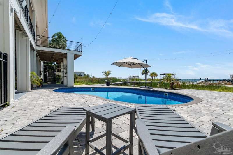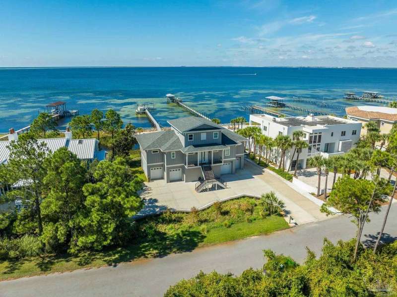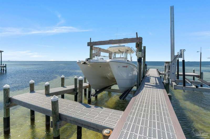 Welcome to this stunning waterfront pool home in the Deer Point subdivision of Gulf Breeze. Offering 90 feet of pristine waterfront with your own private beach, this property is a true coastal retreat.Watch the Blue Angels from your own backyard! Perfect for boating and water enthusiasts, the flow-through pier features a brand-new(2023) 12,000 lb boat lift and a jet ski lift, making it easy to enjoy life on the water. The 4 car garage offers plenty of room for storage.The home itself is designed for both comfort and style, with 4 bedrooms, 2 full bathrooms, and 2 half baths. Every room in the home offers breathtaking water views, creating a serene backdrop for daily living. An elevator provides convenient access to all levels, while the oversized 4-car garage and additional RV/boat parking with reinforced concrete ensure ample space for all your vehicles and toys.Step outside and take in the resort-style amenities. The saltwater pool, newly added in 2022, is perfect for cooling off on warm Florida days. Expansive outdoor living spaces include a spacious upper deck with panoramic views, and outdoor but in grill, as well as a beautifully designed downstairs living area complete with hot tub and outdoor televisions-ideal for entertaining or simply relaxing in your own private oasis.Inside, an open and airy floor plan maximizes natural light and water views. Whether you're gathering in the kitchen with its gas cooktop and double oven, and granite counters or relaxing in the living room with it's gas fireplace, or enjoying your morning coffee on the deck, this home was built to take full advantage of its spectacular location.With its combination of luxury, functionality, and endless outdoor recreation, this Gulf Breeze waterfront property offers the ultimate lifestyle on the water. All Gulf Breeze Schools! Bring your boat, your jet ski, and your sense of adventure-paradise awaits!