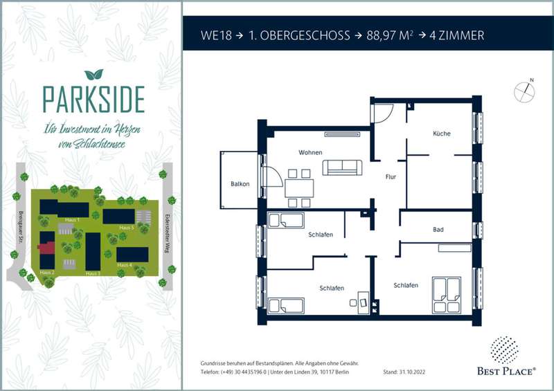 "Parkside" is a comprehensively renovated building ensemble between Breisgauer Straße and Eiderstedter Weg in the popular Schlachtensee district. The solidly rented 1- to 4-room apartments have a living space between 41 - 88m² and are located on the ground floor and 1st floor. With high-quality materials, craftsmanship and attention to detail, "Parkside" is a valuable residential property. The ensemble resembles a new building standard - and thus allows a comfortable and convenient investment for many years!