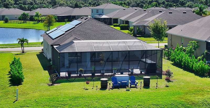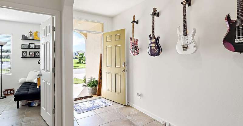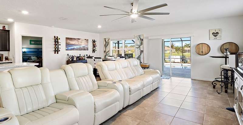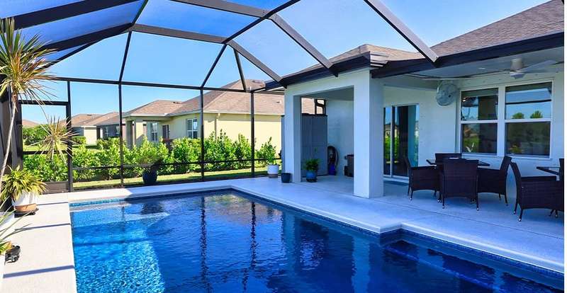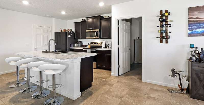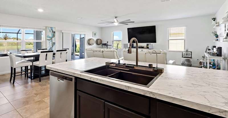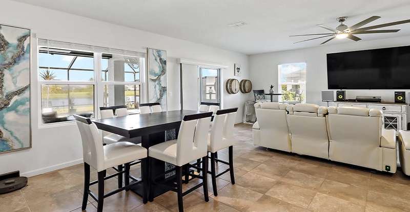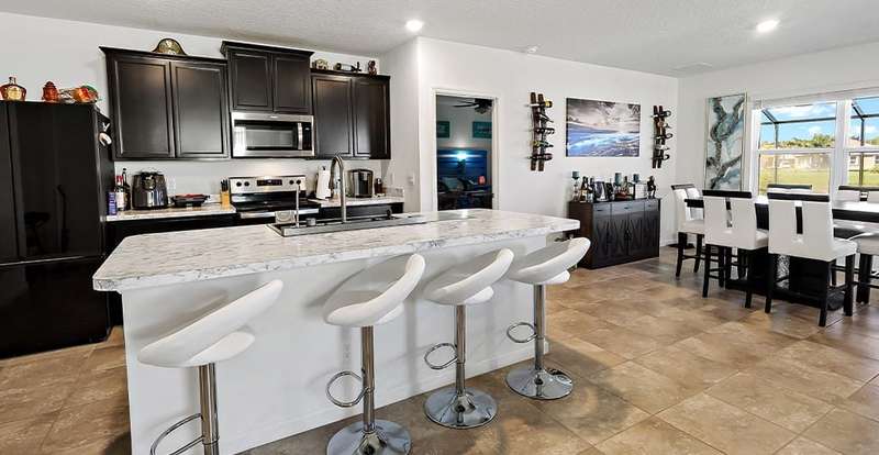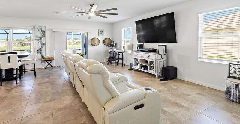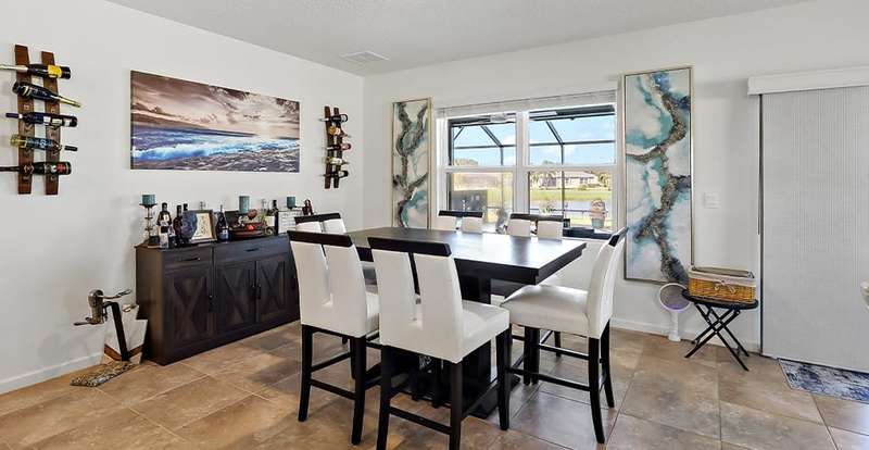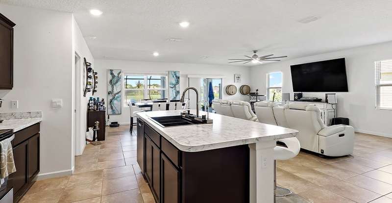 This immaculate single-story home offers 3 bedrooms, 2 baths, and a 2-car garage. Enjoy an open layout with a spacious living room and gourmet kitchen featuring a luxury farmhouse sink, glass rinser, large pantry, and counter-height island. Added upgrades include storm shutters, in-floor outlets, attic winch, garage air compressor with ceiling outlets, and water access in front and back yards. Relax by the backyard pool bar, just minutes from the Indian River Lagoon and Floridas beaches. Rm Sz approx and sub to err