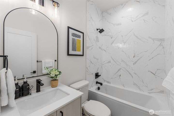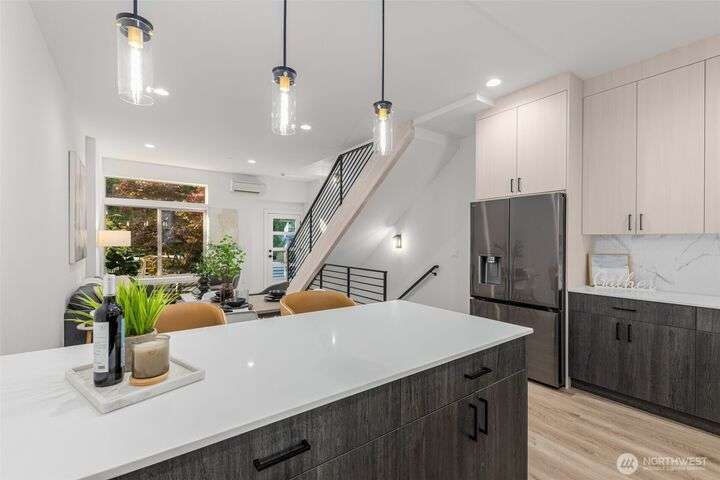 Welcome to Arlo by Greencity Homes, in the heart of Wallingford! Move-in ready 2-4 bed homes await, some w/ garages or carports, large mezzanines & expansive roof decks that boast city, lake & Mt. Rainier views! This home features a spacious and functional floorplan with high ceilings, storage galore, an entertainment-sized kitchen island, a very rare gas stove and gas hookup on the roof deck, and an oversized garage! Two upper bedrooms and a full bath offer functionality, while your primary suite w/ walk-in closet and luxe spa bath acts as your quiet retreat. All this with a 94 Walk Score leading to an assortment of eateries, activities & transportation w/ easy access to Green Lake, Fremont, UW, Ballard and more! 2 color schemes pictured