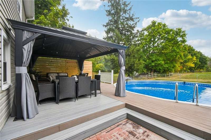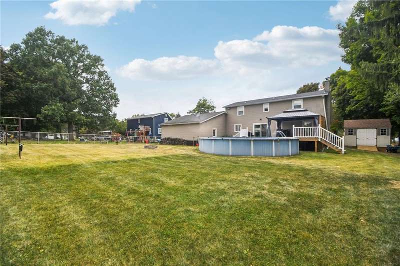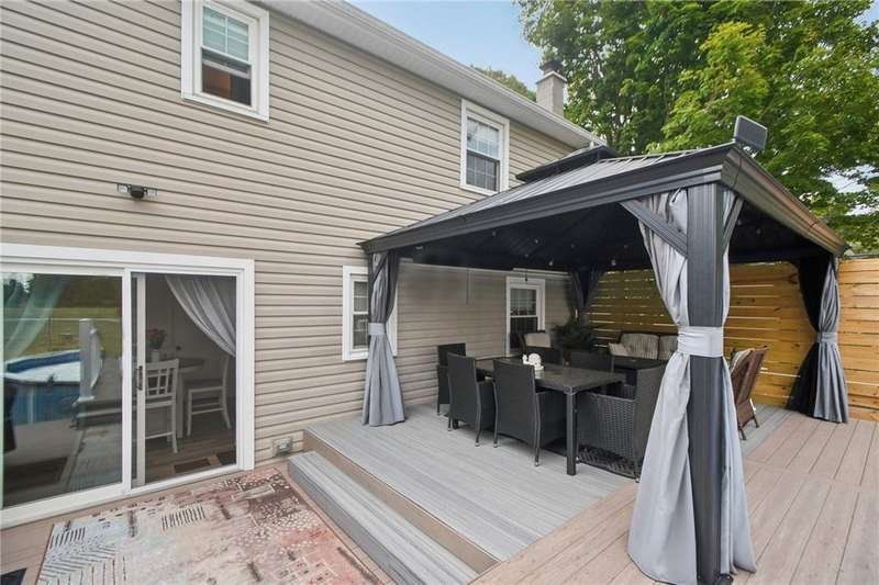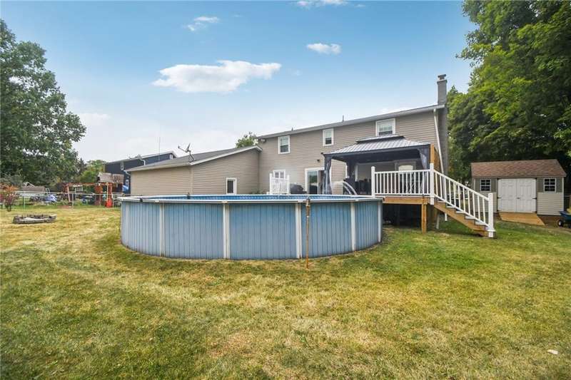 This 4BR/2BA Cape is move-in ready with modern updates and plenty of space to grow. The open kitchen shines with quartz counters, subway tile backsplash, new flooring, and all new appliances- no projects, just unpack and enjoy. A cozy electric fireplace warms the living room, and energy-efficient thermopane windows are already in place. With two bedrooms on the first floor and two upstairs, you'll have flexible options for guests, office or future needs. Outside, enjoy a fully fenced yard with Trex deck, gazebo, and pool for entertaining. Bonus: a heated double-depth garage with 220 line-ideal for storage, hobbies, or future upgrades. Delayed negotiations on Mon 10/6 at 5pm