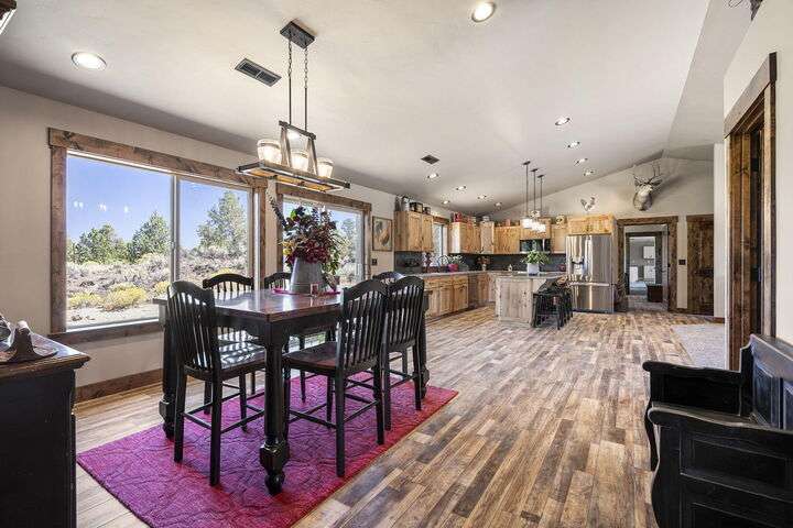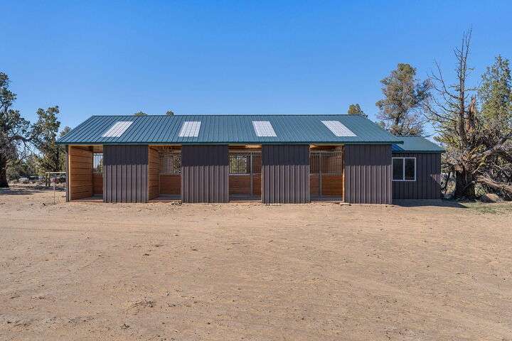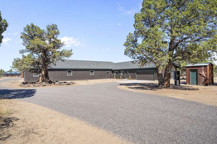 Newly completed in 2025, this single-level home offers the perfect blend of privacy, flexibility, and lifestyle. Set on 4.4 acres at the end of a quiet country lane, enjoy room to breathe and space to personalize. The versatile floor plan lends itself to multigenerational living, hosting guests, or creating dedicated areas for work and hobbies. Two huge garages, with workshop area and bonus room. Equestrians and animal lovers will appreciate the 8-stall barn, space for dry lot turnouts, and access to BLM land with miles of trails. Whether for horses, hobbies, or simply the peace of country living, this property delivers both comfort and opportunity—just 20 minutes from Bend.
