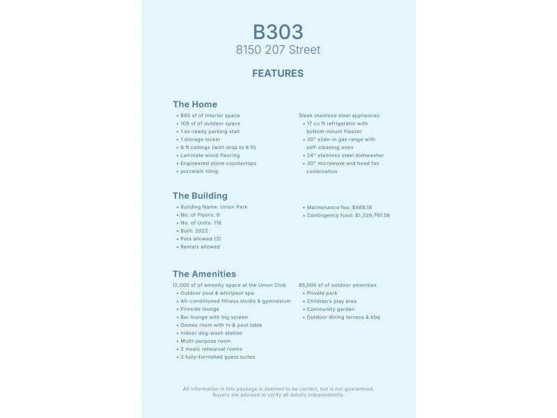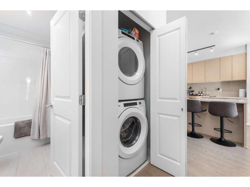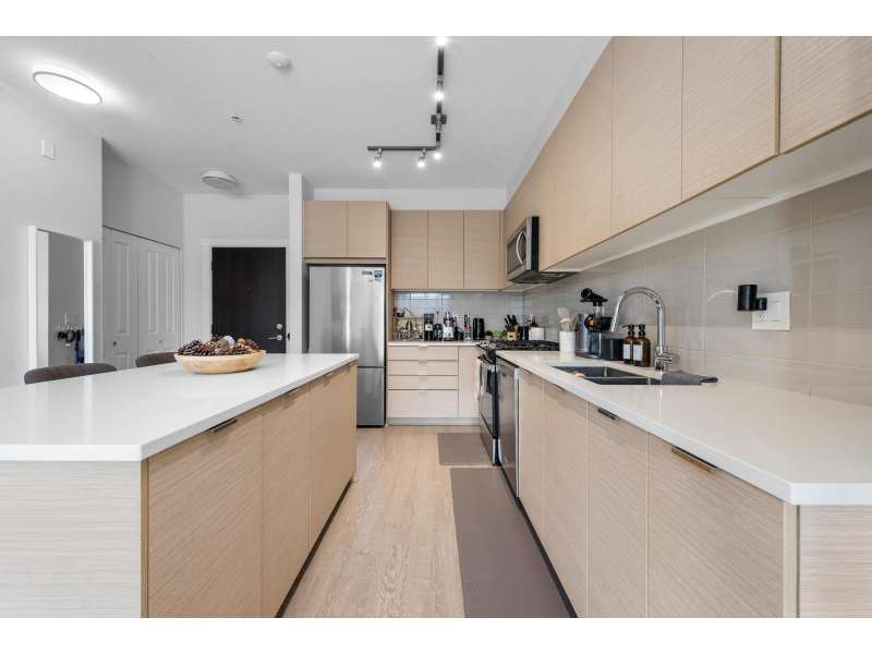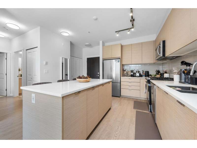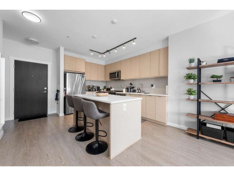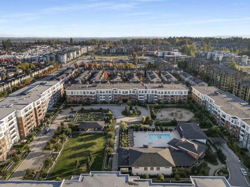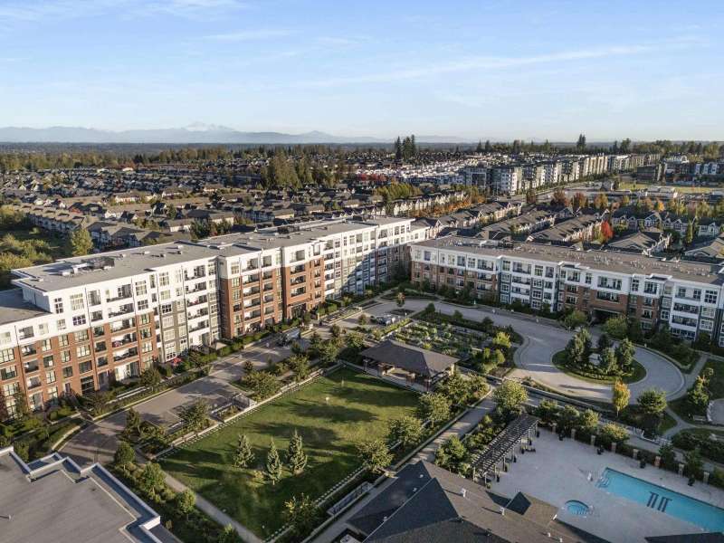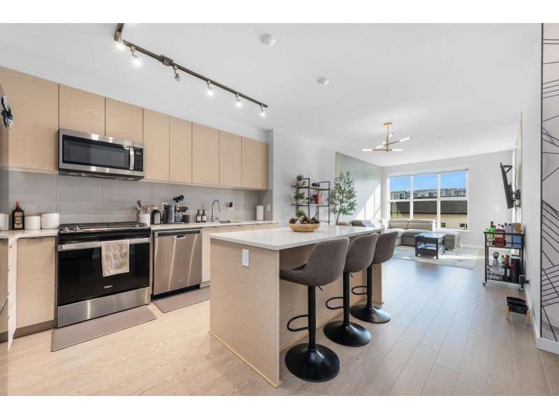 Experience resort-style living at Union Park by Polygon Homes in the heart of Langley. This bright 2 bedroom, 2 bathroom home features overheight 9 ft ceilings, engineered stone countertops, and sleek stainless steel appliances; including a 17 cu ft fridge, gas range, dishwasher, and microwave with hood fan. Enjoy exclusive access to over 12,000 sq ft of amenities at the Union Club with an outdoor pool and whirlpool spa, air-conditioned fitness studio, gymnasium, fireside and bar lounges, games room, dog wash, two guest suites, music rooms, and more. Step outside to 85,000 sq ft of extra outdoor amenity space with a private park, children's play area, community garden, and BBQ terrace. Includes EV-ready parking in front of the elevator and storage. Showings BY APPOINTMENT. (id:58403)