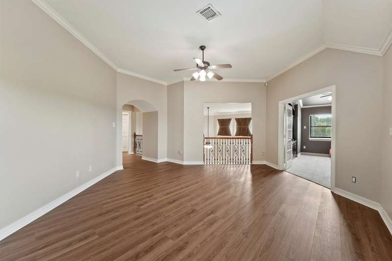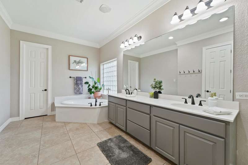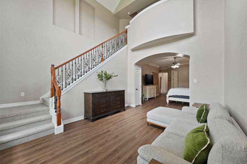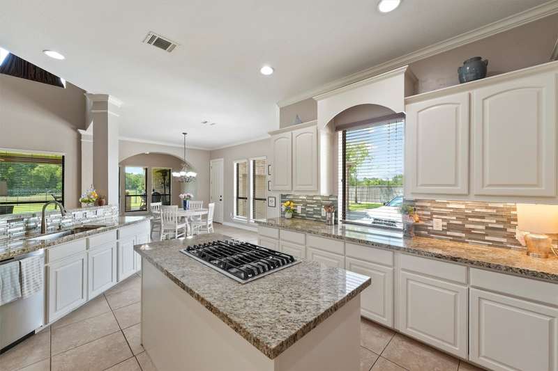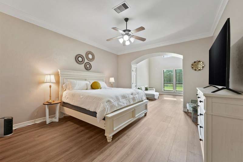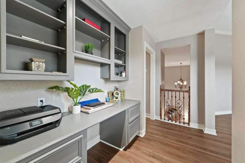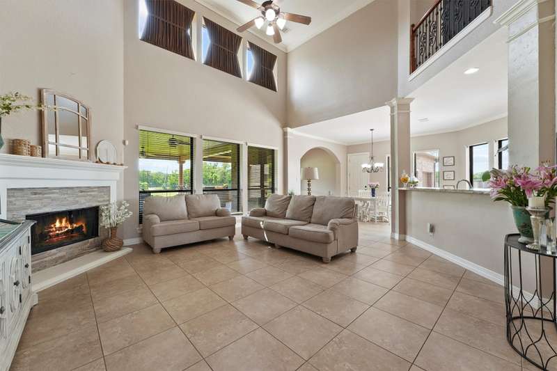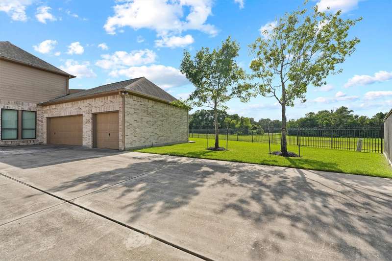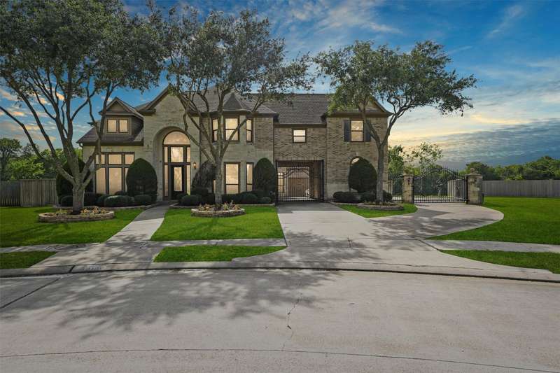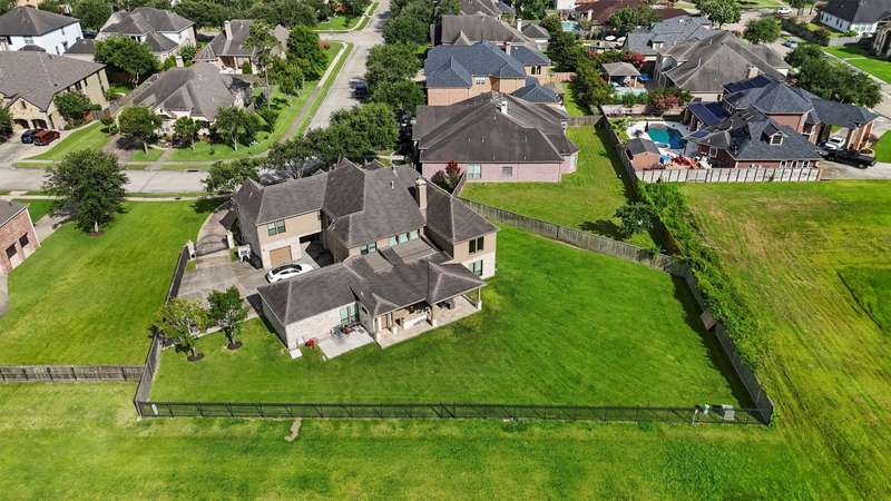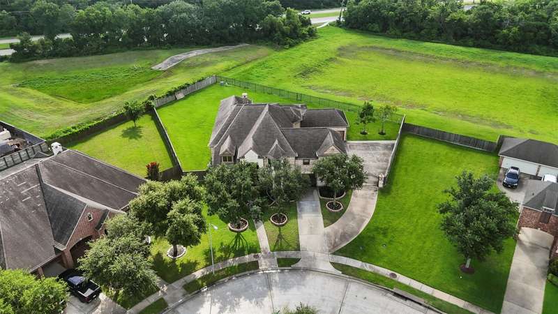 This stunning home offers luxury living in the heart of Friendswood with no back neighbors and a massive 23,416 Sq.Ft lot. Featuring 5+ bedrooms, 4 full baths, and 2 half baths, it's perfect for multi-generational living, entertaining, or those seeking space and comfort. The grand two-story foyer welcomes you with a dramatic double staircase accessible from both the entry and kitchen. The expansive primary suite includes a sitting area, private loft, spa-like bath with jetted tub, large shower, and huge walk-in closet. Upstairs are two guest suites with private baths and closets, plus two additional bedrooms with a Jack & Jill layout. Enjoy a media room, playroom, office nook, and bonus room with built-ins. Includes 3-car garage with built-ins, plus a 1-car garage, custom built-in bed and desk, outdoor kitchen, and exterior half bath for outdoor entertaining convenience. Enjoy elegance, functionality, and space like no other—this home truly has it all!