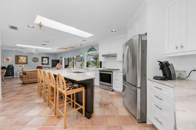 Rare chance to live on almost an acre of land close to the beach. Perfect for building your own custom home. The Four Seasons community is a non-HOA gem tucked away from the hustle and bustle of everyday Naples life. This neighborhood, with its large, oversized lots, is located west of I-75. Centrally located, close to the beach (approximately 10 minutes drive) with all North Naples has to offer: great schools, fine dining, fun dining, numerous golf courses, including public courses, and abundant shopping. This custom home boasts a custom salt water pool, 2 zoned ACs (2023), a newer water heater (2023), 2-car garage, foamed attic, 4 bedrooms (split), 3 baths, remodeled kitchen and baths. Your boat or RV are OK