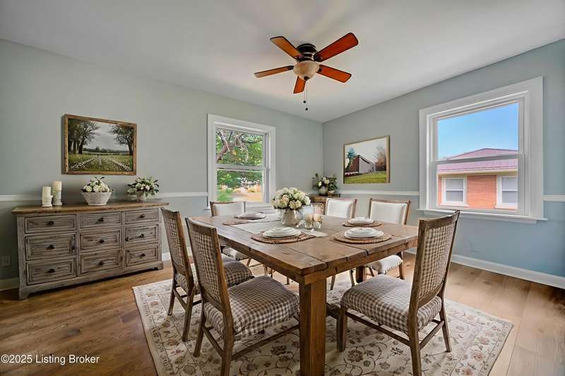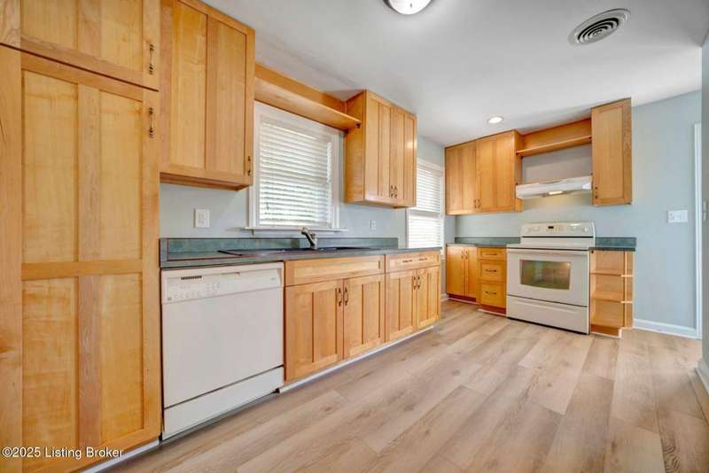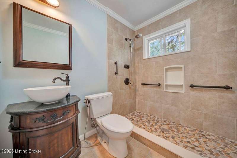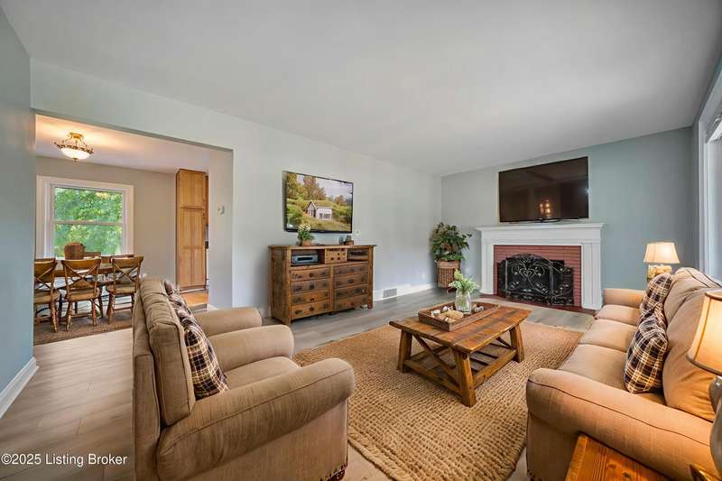 This well-kept ranch home in the desirable Prairie Village subdivision offers spacious living, great updates, and wonderful outdoor space. The front of the home features attractive landscaping, a large front porch, and a convenient wheelchair-accessible ramp. Inside, the oversized living room boasts three large windows for plenty of natural light and a cozy fireplace with a brick hearth and white mantel accent. The eat-in kitchen is generously sized with ample cabinetry and counter space. The primary bedroom is large and accented with a classic chair rail. Two additional bedrooms are also nicely sized and share a stylish full bathroom featuring a unique vanity and beautiful tile finishes. The walk-out basement is fully finished with tiled flooring, a spacious second family room, the third bedroom, and an additional full bath - perfect for guests or extended living. Out back, enjoy a large partially covered patio overlooking the fully fenced yard. The oversized detached two-car garage is a dream, offering plenty of space, a bonus room, and even a stand-alone wood-burning stove. This home combines comfort, function, and charm - ready for you to move in and enjoy.