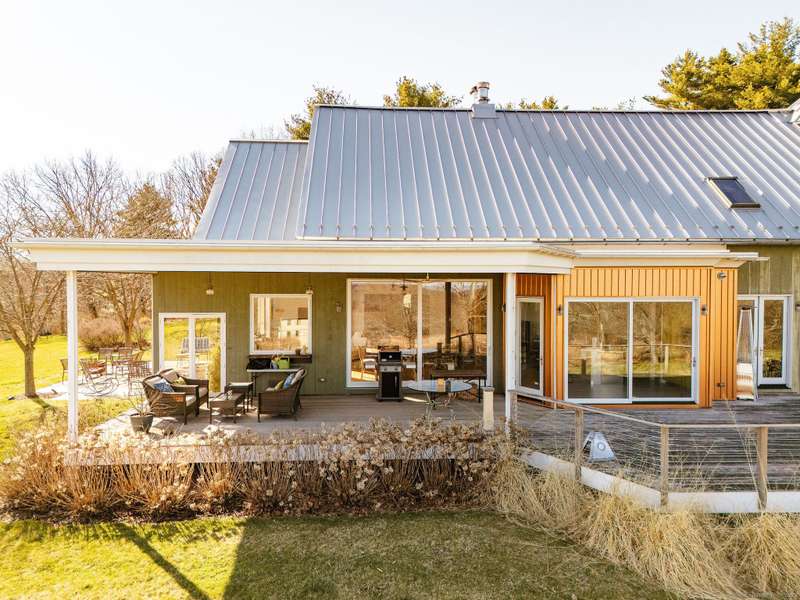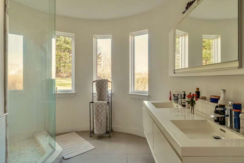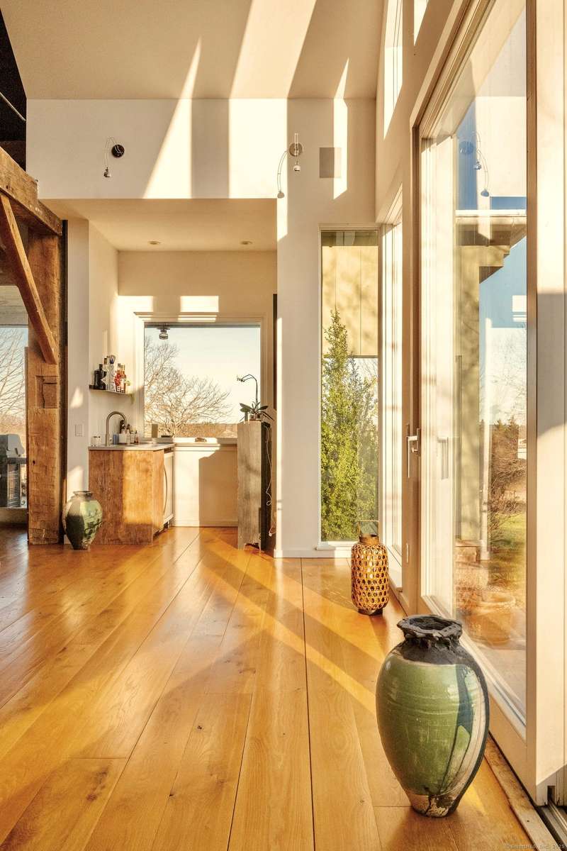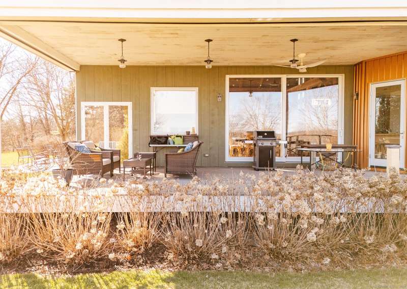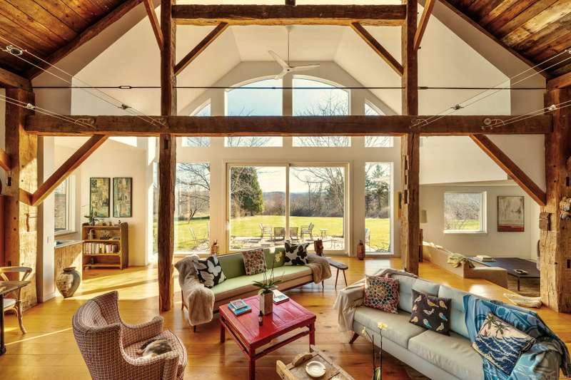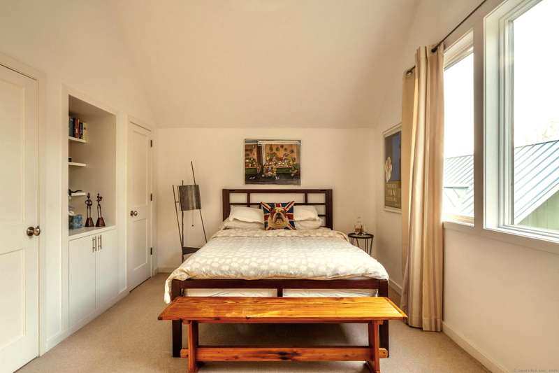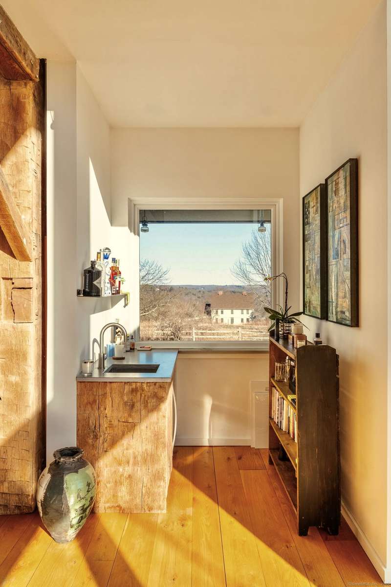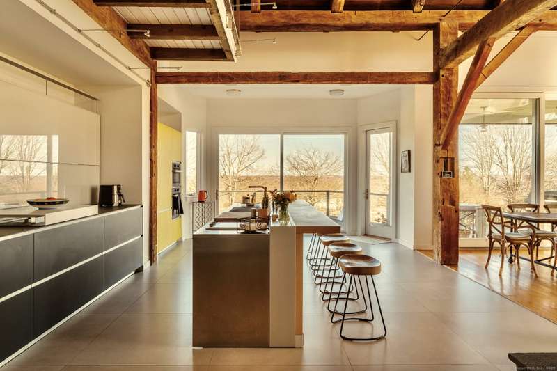 Academic-Year Rental September-June $8,500/month Fully Furnished At the end of a winding country drive, where tall pines rise like quiet sentinels and sunlight filters through branches, the Bantam Barn reveals itself-set high on a hill, completely hidden from view. This exceptional long-term rental blends the soul of a 19th-century barn with the ease and elegance of modern living, offering a rare opportunity to dwell in both history and comfort. Thoughtfully restored and architecturally reimagined, the home features reclaimed barnwood, antique hand-hewn beams, and wide-plank floors throughout. Natural textures are paired with clean lines and contemporary finishes, creating interiors that feel both grounded and luminous. The heart of the home is a dramatic great room with soaring ceilings and a fieldstone fireplace, surrounded by walls of windows that frame views of the surrounding woods. The sleek, modern kitchen is outfitted with integrated appliances, double ovens, an induction cooktop, and a massive island-ideal for both daily rituals and entertaining. Just beyond, a sunken den/TV room provides a cozy, informal space to unwind.