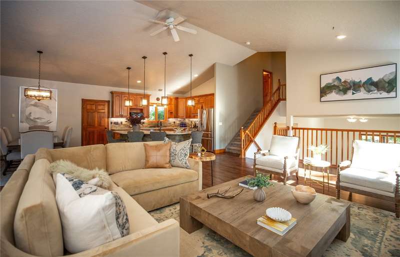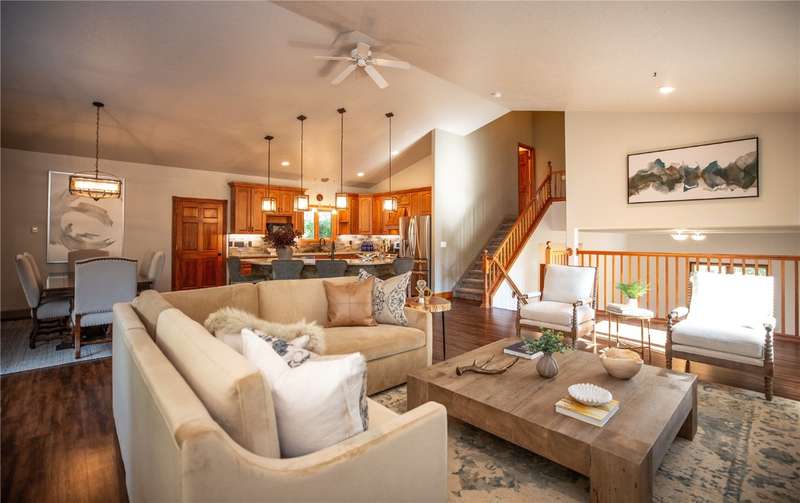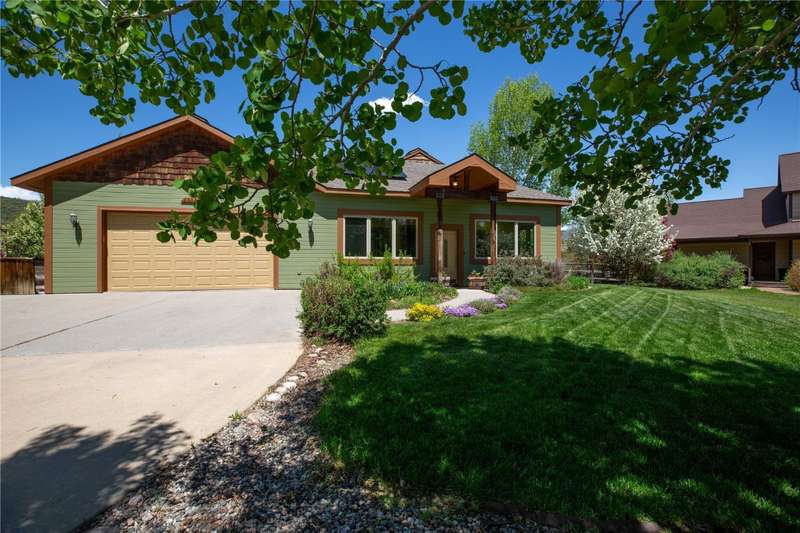 Nestled in the desirable Silver Spur neighborhood just minutes from downtown Steamboat Springs and better yet, walking distance to the new Sleeping Giant K-8 school, this 4-bedroom, 3-bathroom home offers the ideal combination of peaceful living and convenient access to all that Steamboat has to offer. Step inside to a welcoming entry room with durable tile flooring—perfect for snowy days and muddy boots. The main living area boasts an open floor plan with vaulted ceilings and an abundance of natural light, creating a warm and inviting atmosphere. The kitchen flows effortlessly into the living and dining areas, making it perfect for both everyday living and entertaining. Up a half flight of stairs, the private primary suite includes an en-suite bathroom with soaking tub and shower, a walk-in closet, and a NW facing view deck to take in the morning sunshine. There's two additional bedrooms upstairs that share a full bath. Just a few steps down off the great room, the lower level features a spacious family room, the 4th bedroom, and a full bathroom and laundry room. Off the family room is the 800 square foot covered back patio. Ideal for entertaining, this covered space flows out to the lawn and beyond that is the open space featuring the Silver Spur hiking and skiing trails. Top it off with a new 5,000 watt solar system to save on energy cost. Enjoy the community’s quiet, friendly vibe while being just minutes from downtown, schools, trails, and all the amenities of Steamboat Springs.