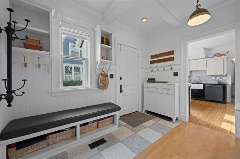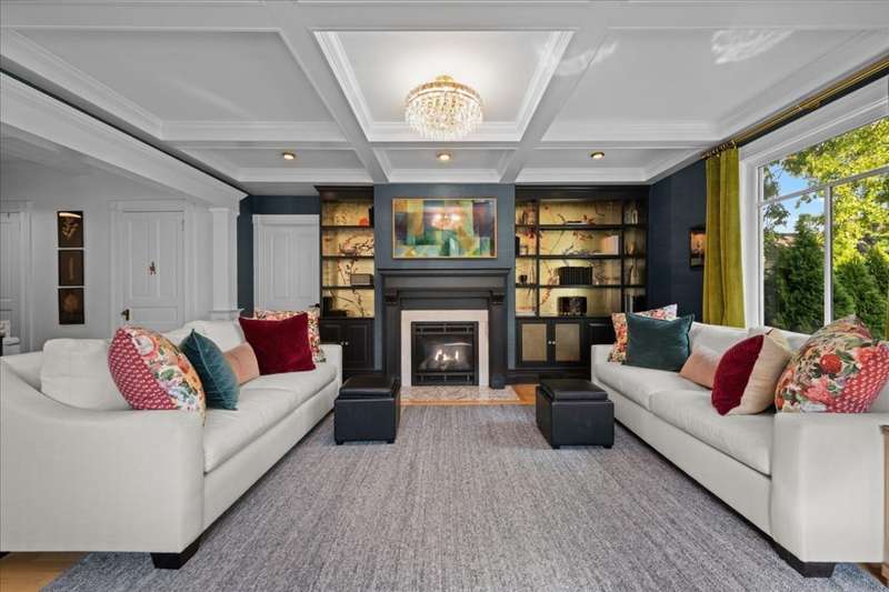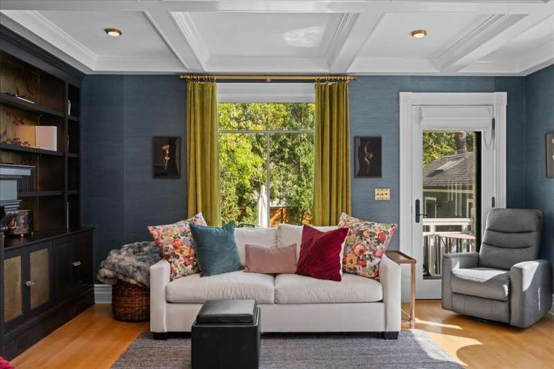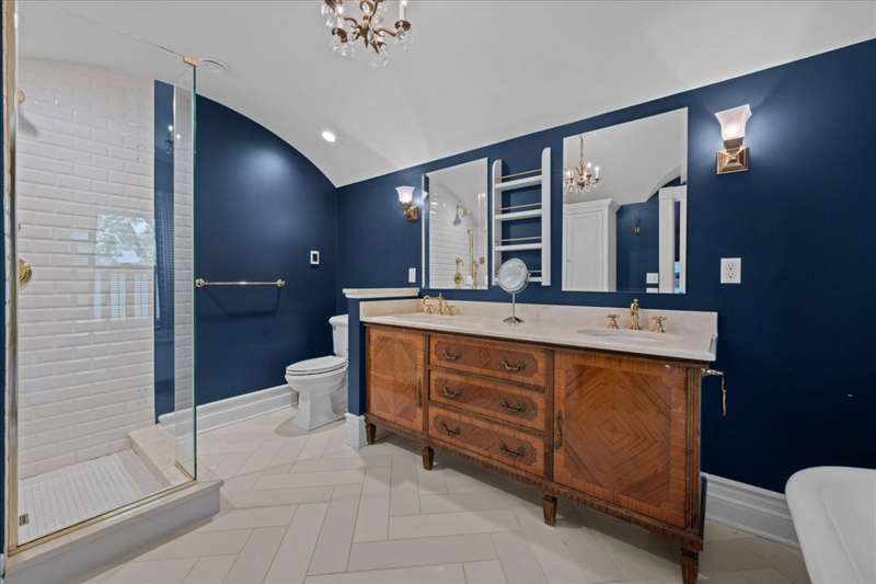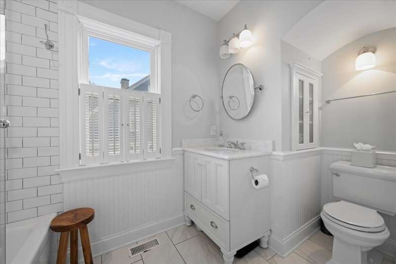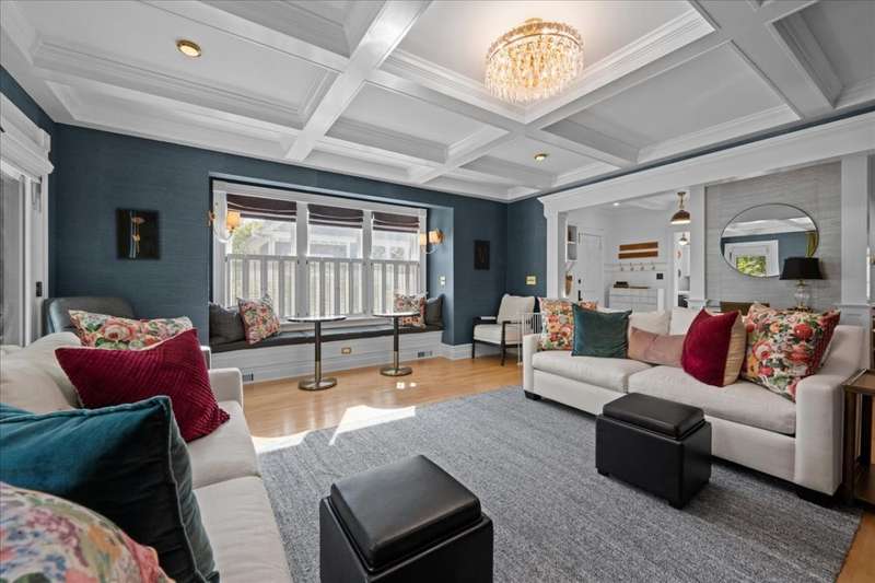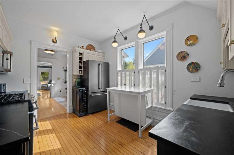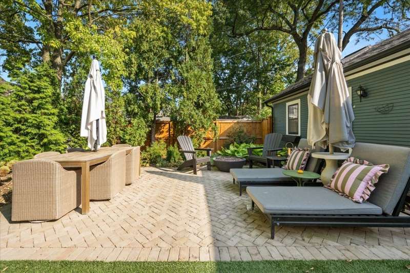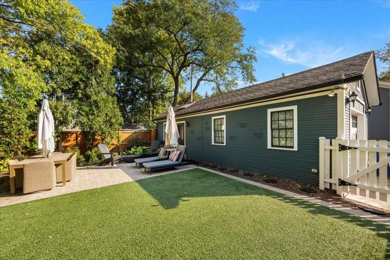 Location and Lifestyle-Step inside and fall in love! Experience downtown Geneva living at its finest in this designer-curated home. Every detail has been thoughtfully tailored, blending modern elegance with an effortless 'happy living' design. With its striking interiors and unparalleled location, this residence is as much a showpiece as it is a retreat - all just steps from the heart of Geneva's dining, shopping, and vibrant city energy. A welcoming front porch invites you inside, where hardwood floors throughout the first and second levels (many original) and 9-foot ceilings in the living and dining rooms create an open, elegant feel. A plaque featuring the original owner's signature adds a historic touch, while designer lighting throughout brings polished, contemporary flair. The bright, inviting kitchen features soapstone countertops, Carrara marble backsplash, high-end appliances, and a spacious walk-in pantry. An addition expanded the home to include a breathtaking, light-filled family room with a coffered ceiling, custom cabinetry and bookcases, banquette seating, and a wall of windows that flood the space with natural light. At its heart, a gas fireplace with Artistic tile surround adds warmth and charm. Upstairs, the spacious primary suite, part of the newer addition, features vaulted ceilings, a custom walk-in closet, and a spa-like bath with a clawfoot tub, separate shower, heated floors, a gorgeous vintage vanity, and a striking barrel ceiling. A stylish hall bath and convenient second-level laundry serve the additional three bedrooms. Altogether, the home offers five bedrooms and four full baths. The main house includes four bedrooms and three full baths (one on the main level), while the adorable coach house adds a fifth bedroom and fourth bath with skylight and built-in dresser-perfect for a guest suite, home office, or studio. Outdoor spaces are equally enchanting, with recent updates including a brick paver patio, turf yard, privacy landscaping, cedar fence, and sprinkler system. The ribbon driveway leads to the detached one-car garage. Other recent improvements include a partially finished basement and cedar privacy fence (2025), water heater-coach house , HVAC (2024), AC, exterior paint, brick patio, landscaping, and kitchen updates (2023), designer lighting, wallpaper, and tile (2022), main house roof, addition windows (2016). Don't miss this rare opportunity to own this stunning historic home in an unbeatable downtown location just steps away from dining, shopping and the Metra.