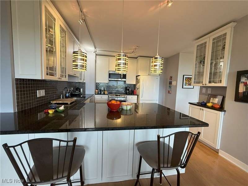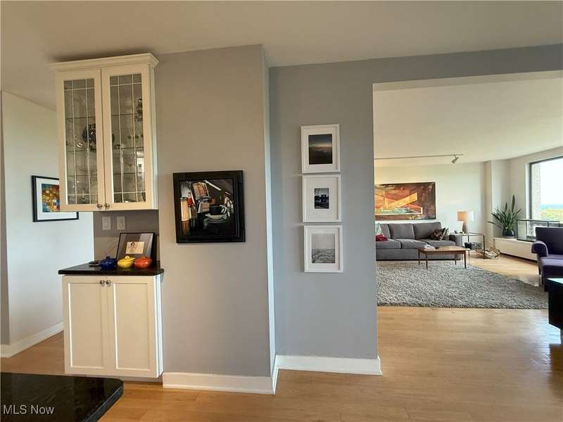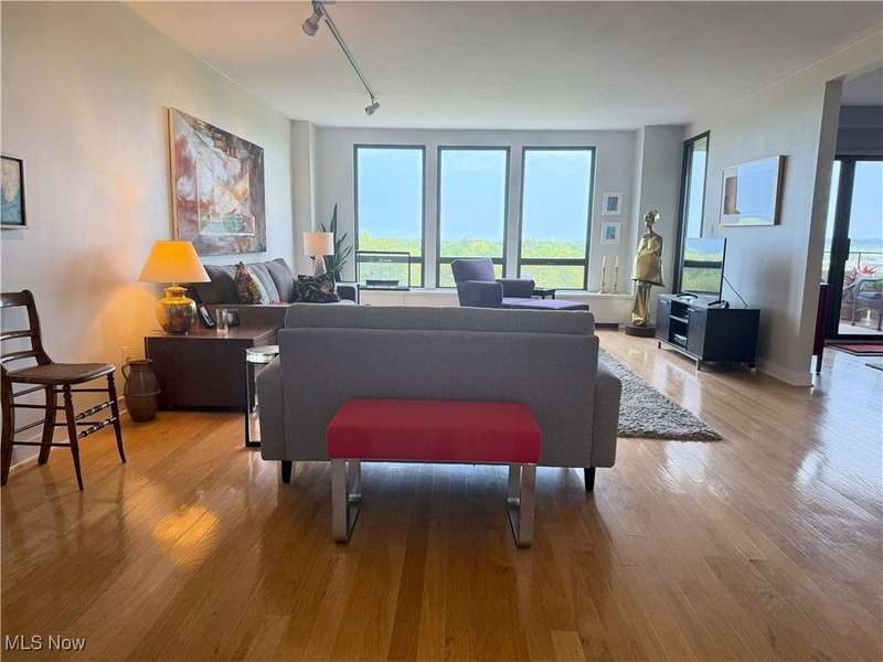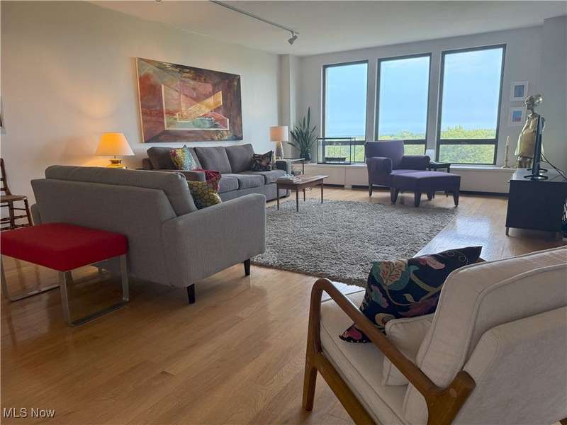 One Bratenahl Place 1002, HIGH FLOOR, GLORIOUS VIEWS, GREAT OPEN SPACE, BEAUTIFUL KITCHEN AND DESIGN THROUGHOUT THIS IS THE ONE. Looking to downsize, looking for lakefront living, looking for a quick drive to the city, universities,great medical centers, and more or simply looking for a space to enjoy elegant living at its BEST? Suite 1002 is your condo.Located in the picturesque village of Bratenahl,t's your chance to move into a great spacious condo at an incredible price.The current owners' appreciation for style, design and a refined lifestyle is on full display.Kitchen is beautifully updated in classic black and white, cabinets with roll out drawers, black granite countertops, storage filled peninsula opens to the dining room with great views of the lake and over the tree line beauty.2 full baths,one with walk in shower and both updated with cabinets and lighting. Spacious bedrooms with great views from each Enjoy relaxing and starting the day with colorful sunrises on the balcony with space for great gatherings and a natural extension of the living space. No expensive renovation necessary. This beauty is ready now.Surrounded by more than 8 acres of plush greenspace,Lake Erie only steps away, in ground swimming pool,tennis courts,fire pit,walking trails and the most beautiful sunsets from the magnificent waterfront grounds.HOA fees cover all utilities, 24-hr security and loads of amenities,new in-house restaurant,tennis courts, pools,front desk concierge services and more.Conveniently located near major medical centers, universities,University Circle, Playhouse Square,art museums, downtown Cleveland,restaurants, metro parks and Lake Erie.Lake resort style living for the discriminating buyer who wants luxury and refined residential living experiences NOTE: The building is undergoing a major renovation that will significantly modernize and update the residential hallways.Display of the design with carpet and wallpaper samples is on display in the lobby.