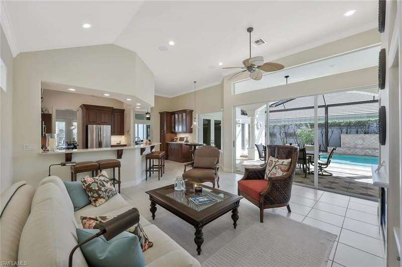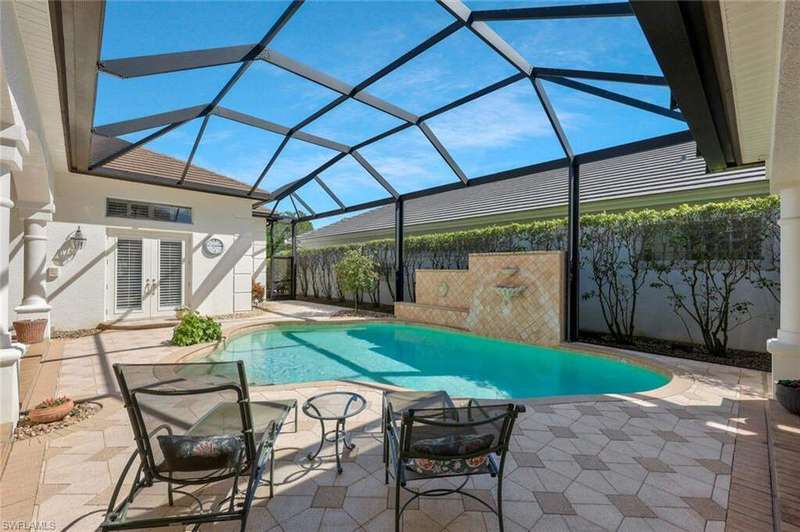 No waiting for golf with the purchase of this Arthur Rutenberg Courtyard Home in Kensington Golf & Country Club Experience luxury living in one of Naples' most sought-after private golf communities-Kensington Golf & Country Club, where elegance meets convenience. This great Arthur Rutenberg Courtyard Model offers an exceptional opportunity rarely available in today's market: the ability to purchase a full golf membership, allowing you to skip the years-long waiting list and enjoy immediate access to one of Southwest Florida's premier courses. Designed for both entertaining and everyday comfort, this residence features an inviting open layout filled with natural light, a private guest suite with mini-kitchen and full bath, and a tranquil courtyard oasis perfect for relaxing or hosting. Multiple bedrooms and living areas open directly to the pool, creating a seamless blend of indoor and outdoor living. Enjoy breathtaking golf course views, a separate golf cart garage and private driveway, and a layout that perfectly balances sophistication and functionality. Kensington's resort-style amenities include championship golf, tennis, pickleball, bocce, a state-of-the-art fitness center, resort pool, and vibrant dining and social spaces-all within minutes of Naples' world-class beaches, shopping, dining, Artis-Naples, and Sugden Theatre.