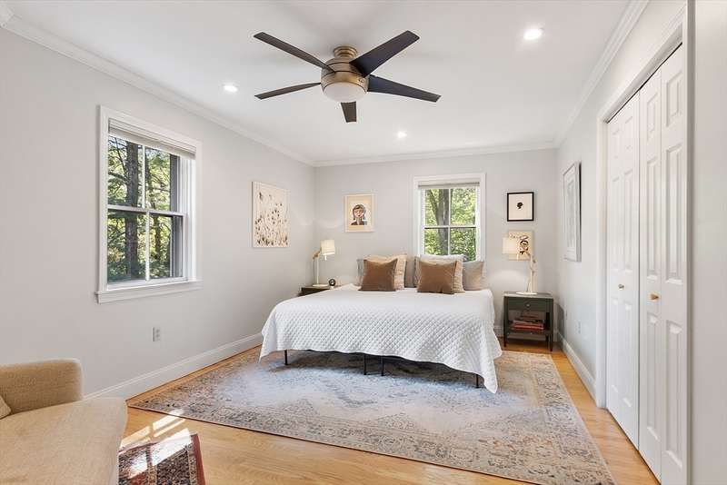 Motivated Seller! Tucked at the quiet edge of Battle Road Farm, this 3BR, 1.5BA townhouse offers serenity steps from Minute Man National Park. Sunlight pours through five living room windows, framing woodland views and a cozy wood-burning fireplace. Enjoy an upgraded kitchen with granite counters, renovated baths, hardwood floors, and crown molding. Unique four-sided window exposure fills every room with light, while a private patio invites morning coffee amid birdsong. Modern touches include a smart EcoBee thermostat, keyless Schlage entry, and Ring doorbell. Recent updates to the AC, furnace, and water heater ensure care-free living. Perfectly placed between farms and city alike, with top-rated schools and easy access to Route 95, just 20 min to Boston a peaceful haven where nature meets convenience.
