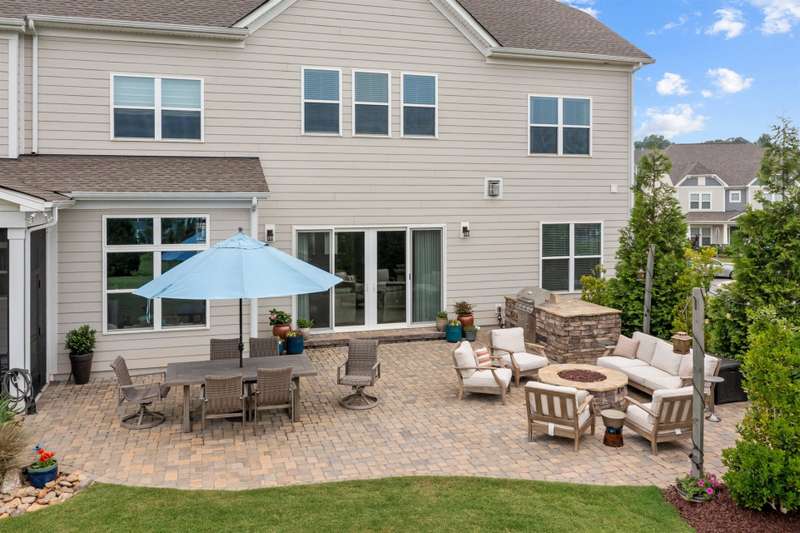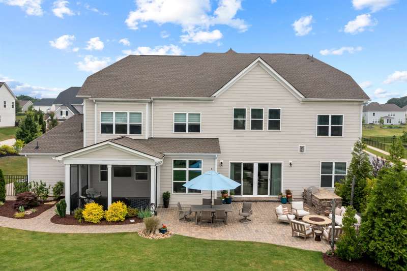This is the one you've been waiting for - new dream house with incredibly landscaped 0.41 acre fenced yard in Hough HS and Bailey MS area! The backyard oasis of privacy, professional landscaped trees and flat space await you! This exceptional home offers 5 bedrooms, 4 full baths, 1 half bath and over 4,200 sq ft of open, light-filled living space. Two offices provide the perfect blend of home-work life balance with one on each level! The main level flows beautifully into both a screened porch and an open-air patio?ideal for entertaining or relaxing. Gourmet kitchen features oversized island, extensive cabinet storage, GE Cafe appliances and large walk-in pantry. Primary bedroom suite is complete with a light filled office. Primary bathroom features dual sinks, large soaking tub, elegant shower and dual closets with abundant space with professionally installed built-in shelving. This premium lot has an incredible private tree-lined landscaping plan with gorgeous flow, colorful flowering, unique plantings, stone and a flat area in the center. Yard includes pre-wire for a hot tub and drip irrigation. Paver stones surround the built-in Bull Outlaw 30" 4-burner outdoor gas grill! Enjoy evenings sitting around the built-in stacked stone Gas Fire Pit surveying your elegant paver stone patio which reaches to the garage and driveway. Additional highlights include a 3-car garage, spacious second-floor bonus room, and great finishes throughout including 10' ceilings. Black Aluminum 54" Fence encloses the backyard with 2 gates (front and side) and a gorgeous Dry River Bed. Residents of the sought-after Walden community of 377 homes enjoy access to amenities including a clubhouse, pool, playground, basketball hoop and picnic area. Ideally located near Lake Norman, I-77, Charlotte, restaurants, shopping and more. Trees include 29: Nellie Stevens Holly, Arbovitae, Little Gem Magnolias, Pink Dogwoods, Eastern Redbuds, Cherries, Plums, Crepe Myrtles, Cryptomeria, Sugar Maples, River Birch and Japanese Maple. Bushes/Shrubs: Limelight Hydrangea, Azalea, Sunshine Ligustrum, Kaleidoscope Abelia,?Pink Muhley Grass, Tea Olive, Dwarf Loropetalum, Camellia, Dwarf Butterfly Bushes?and Oak Leaf Holly. Seller is related to listing agent.