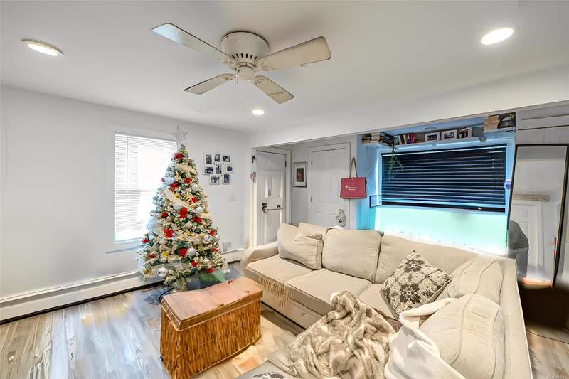 This legal two-family property offers an excellent investment opportunity. The first-floor unit features a comfortable layout with one bedroom, a spacious living room, an eat-in kitchen, a full bathroom, and a convenient laundry room. The second-floor unit mirrors this functionality, including one bedroom, a living room, an eat-in kitchen, and a full bathroom. The property is fully fenced, ensuring privacy and security. Ideally situated, it is close to the village, offering easy access to restaurants, shops, and the Long Island Rail Road, making it a highly desirable location for tenants and homeowners alike.