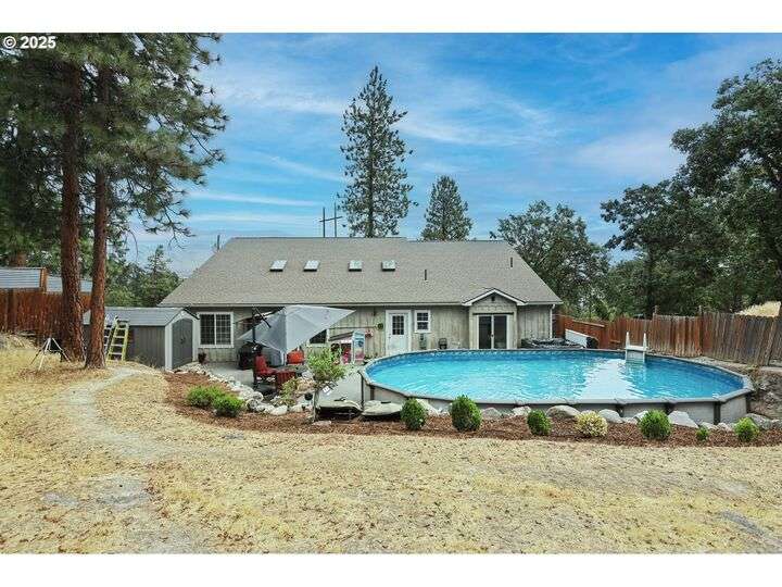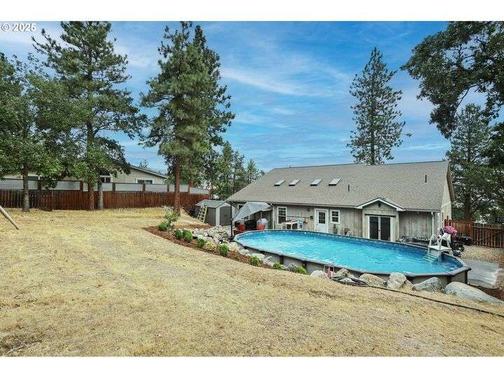 Beautiful and spacious 4-bedroom, 2.5-bath, 2,576 SQFT one-level home with thoughtful design and quality finishes throughout. The great room features vaulted ceilings and skylights that fill the space with natural light, while the formal dining area offers an elegant spot for gatherings. The kitchen is both stylish and functional with hickory cabinets and quartz countertops. Enjoy the flexibility of a large family room or den. The expansive master suite includes an updated bath and direct access to a private patio with hot tub and above ground pool. Spare bedrooms are generously sized and located opposite the master for added privacy. Relax or entertain in the fenced backyard with a lovely patio space. Room for RV parking. The covered front porch offers stunning views, making this home the perfect blend of comfort and charm. Exterior paint taking place soon!