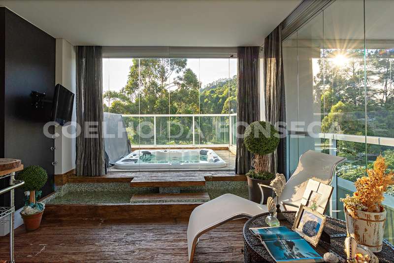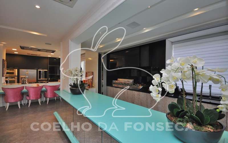Apartamento no condomínio THE PENTHOUSES, com 367m² área privativa/útil, 4 dormitório(s), 3 suíte(s), 5 vaga(s), 5 banheiro(s), piscina, churrasqueira, terraço, mobiliado (a), ar condicionado, dep. de empregados, varanda gourmet.