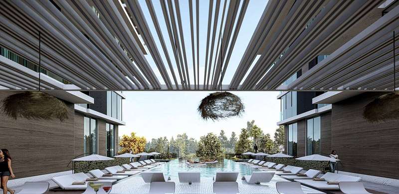 The project has an indoor parking lot, indoor-outdoor children's playground, indoor-outdoor swimming pool, waterfall, communal garden, bicycle parking area, steam room, poolside bar, fitness center, Turkish bath, jacuzzi, massage rooms, spa, sauna, relaxation room, library, lobby, table tennis, billiards, camellia, barbecue area, 24/7 security, generator, Wi-Fi in every real estate and central satellite TV system.