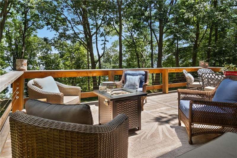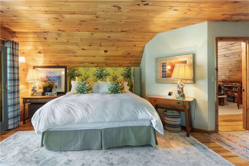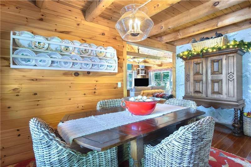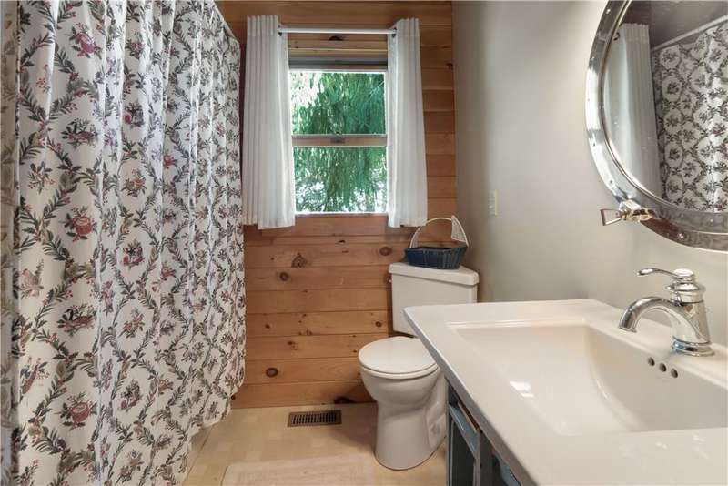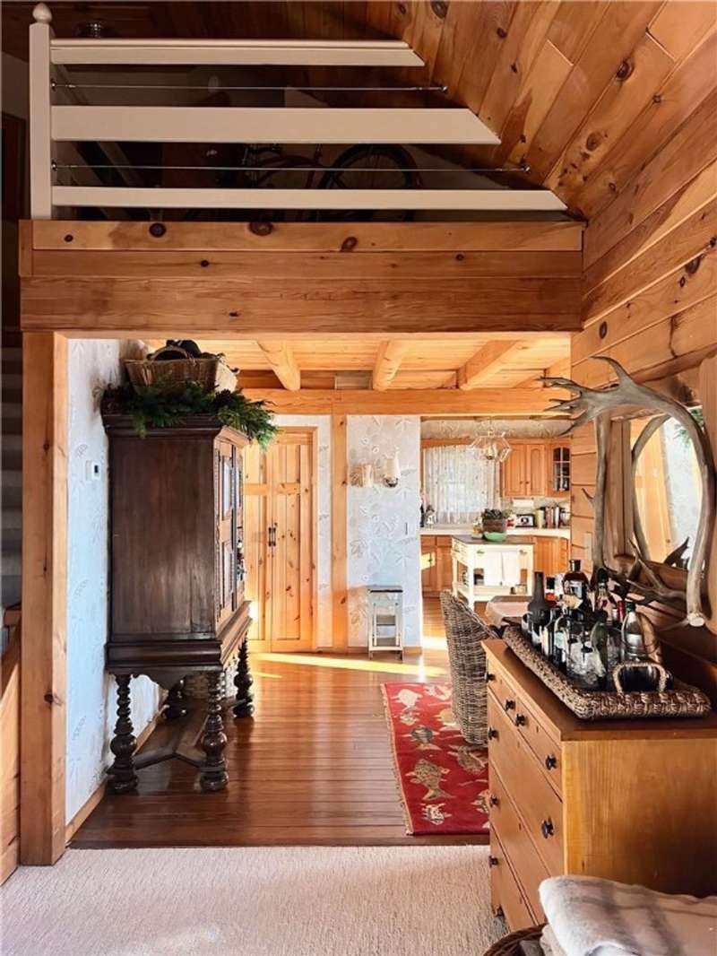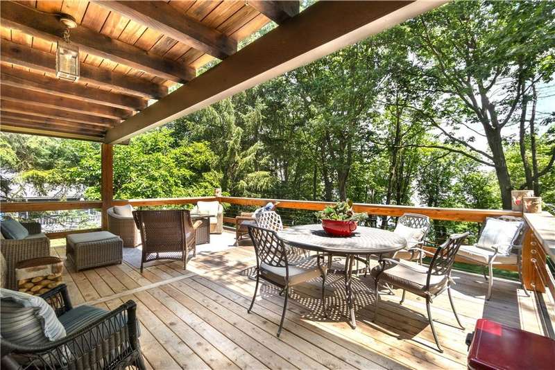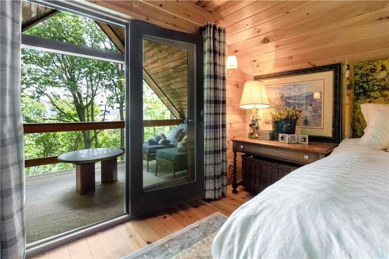 Welcome to this charming and inviting three-bedroom, two-bathroom log home, perched above the sparkling shores of Seneca Lake. Nestled on more than an acre of lush woods, this property provides exceptional privacy and an interior curated for a discerning buyer. Step inside and let the warmth of original hardwood floors, vaulted ceilings, and stunning lake-views welcome you home. The newly built, expansive deck is perfect for relaxing and entertaining friends and family while taking in panoramic views of the lake. The master suite boasts uninterrupted lake views with its very own private walk-out deck. Enjoy cooking with a full view of the lake in a spacious kitchen featuring ample counter space, a large sink, full-size appliances, and convenient access to the outdoors for grilling. A cozy second cottage at lake level offers so many possibilities?ideal for transforming into a guesthouse, art studio, or short-term rental opportunity. With 100 feet of private shoreline, the property includes a generously sized permanent dock that easily accommodates large boats, along with wide steps that lead directly to the beach. Other charming details include a detached two-car garage, generous level yard space, buried propane and utility lines that maintain the property's pristine appearance. Whether you're watching the leaves change in the fall, cozying up by the wood stove in the winter, or soaking in golden sunsets over the summer, this one-of-a-kind property offers year-round beauty and peaceful lakefront living.Log home is 1,672 sq ft, and waterside bunk house/ cottage is approx 800 sq ft.