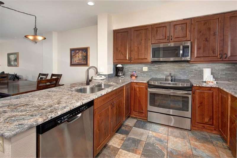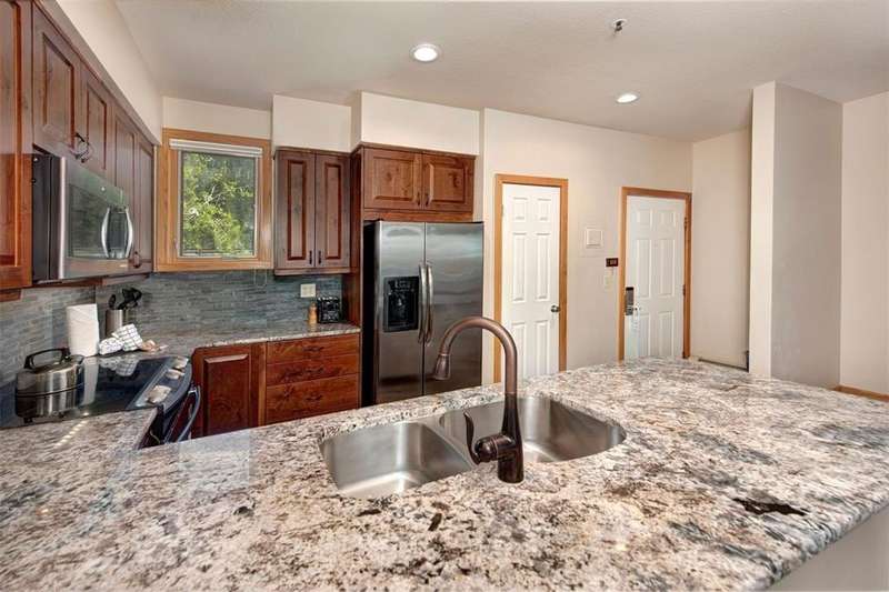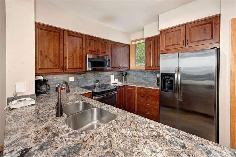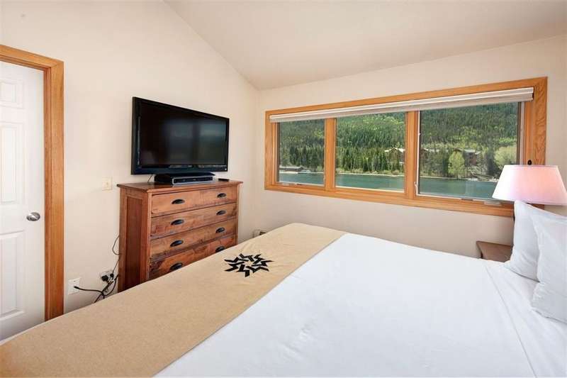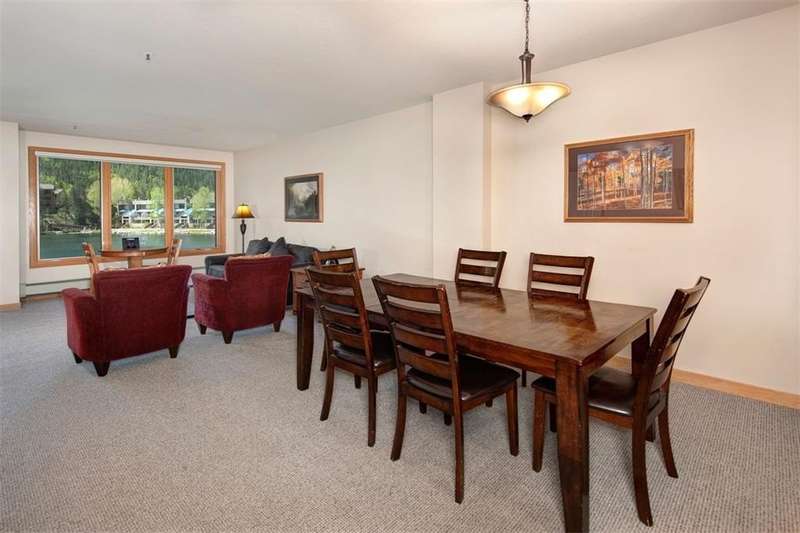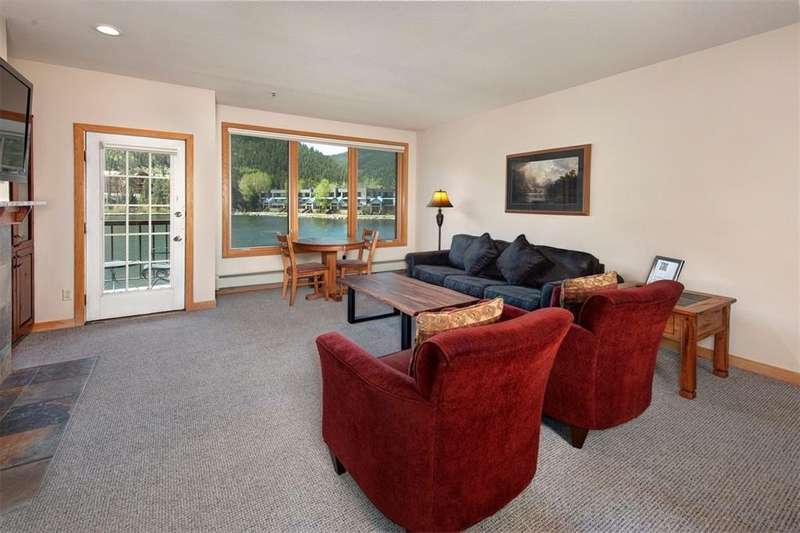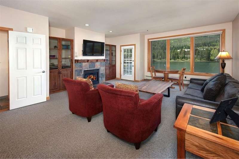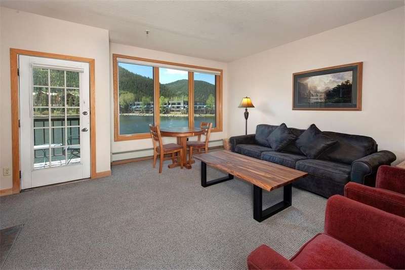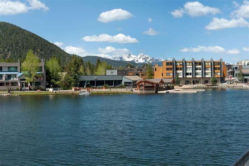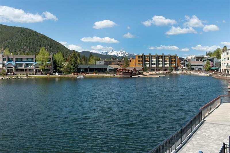 LAKESHORE GARAGE INCLUDED IN PRICE! Townhome-style floor plan in Keystone's Lakeside Village with south exposure on Keystone Lake. Enjoy paddle boating in the summer and ice skating in the winter. Covered deck overlooking Keystone Lake. Views of Independence Peak and the Ida Belle mine to the east to Peaks 1-4 of the Ten Mile Range to the west. Strong rental property close to Keystone Conference Center. Remodeled kitchen features knotty alder cabinets, granite countertops, stainless appliances, undermount stainless steel sink. New sleeper sofa and coffee table. All new windows in 2020. Gas fireplace with granite mantle and built-in knotty alder shelving and glass doors. Tiled entry for ski boots. Ski locker next to front door. Half-bath on main living level with bedrooms upstairs. Vaulted bedroom ceilings. Bath areas remodeled. Owners closet at top of stairs. This is a very clean and fresh-feeling property. Use of East Lake pool, hot tub, and sauna. HOA dues include all utilities. Strong HOA reserves. No Transfer Assessment as in other areas of the resort. Close to bike/walking path along the Snake River (stocked for great trout fishing!). Bus service to ski base. Pet friendly for homeowners only.