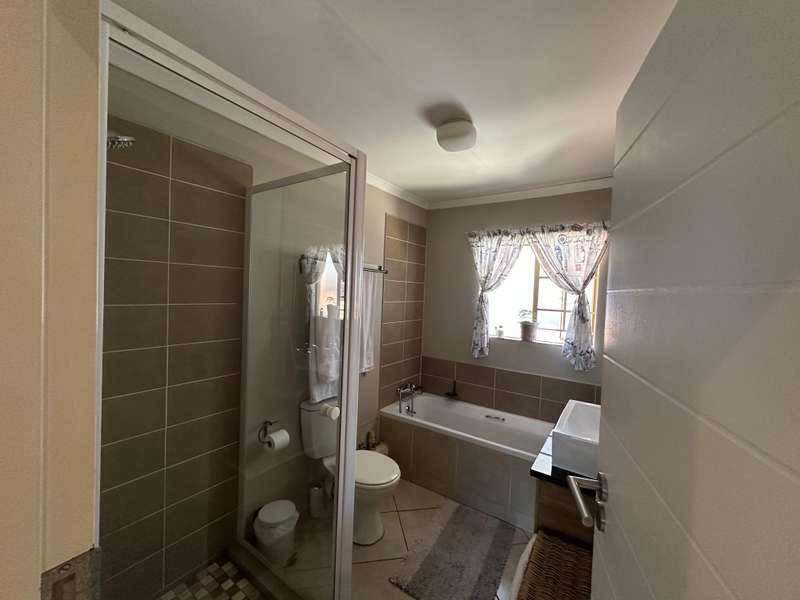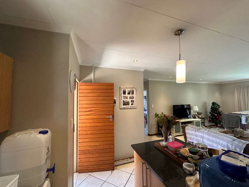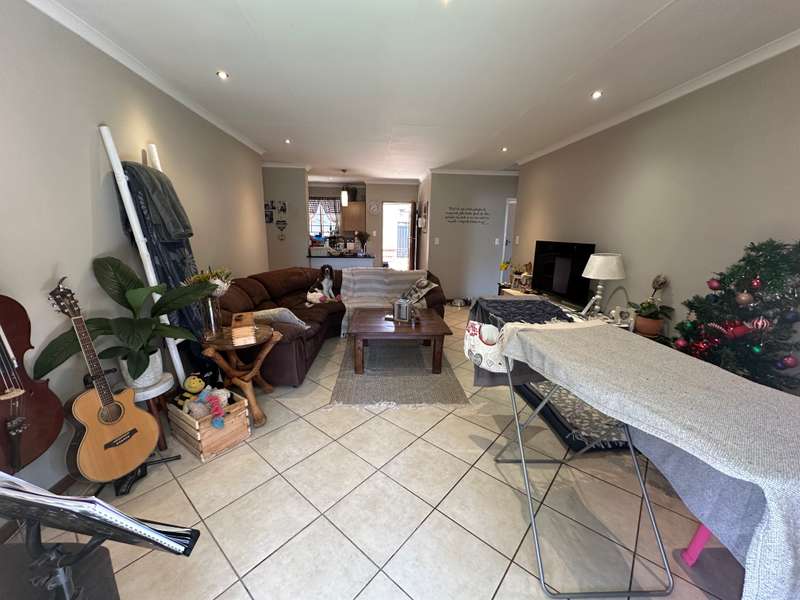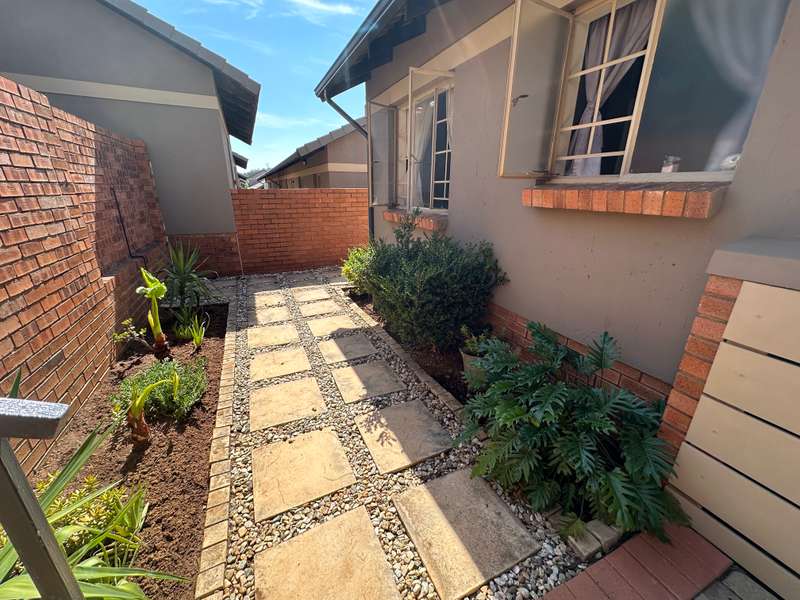 Modern Simplex in high security Estate, Excellent value for money! This property includes 3 large bedrooms and 2 full bathrooms ( 1 en-suite) and Double automated garages. As you enter you get a sense Privacy and tranquility through the open-plan dining and lounge area that goes out onto patio and landscaped garden area the goes around one side of the house, which is perfect for children to play and enough space for your Pet. A Gourmet kitchen with 3 machine spaces with modern finishings. An installed inverter for the heavy load shedding days and an airconditioner in main bedroom to beat the Heat! This Townhouse is a Must See..... Please Book an appointment to view before its too late!