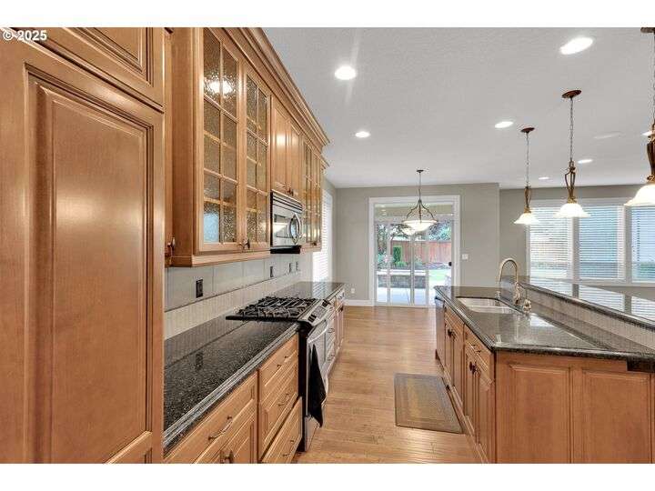 Beautiful Custom High Quality Built, very securuted,private and well maintained Home on a Quiet Culdesac surrounded by other pretty Homes. Main Floor Master bedroom and office, Great room with Gas Fireplace, Formal Dining room. Beautiful Granite Counter Kitchen. Upstairs have additional three bedrooms and large bonus room for entertainment. Beautiful Gardens front and backyard oasis with covered porch and custom glass fire pit. Storage shed. And a lot of more… Shopping, 205 to PDX just moments away! Ready to move in!
