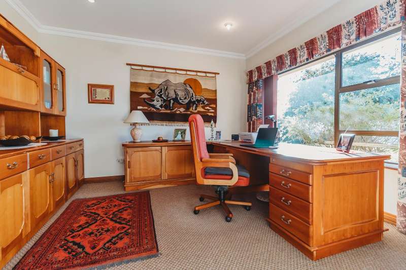 DUAL MANDATE Perfectly positioned on the prestigious hillside of Peters Road, this impeccably maintained family residence combines timeless elegance with breathtaking natural surroundings. The open-plan living and dining areas flow seamlessly onto a spacious balcony, offering sweeping views of the lake and mountains?Çöan ideal setting for both relaxation and entertaining. A beautifully appointed kitchen with solid wood cabinetry anchors the home, while a private study featuring bespoke woodwork provides an inspiring and peaceful workspace. Designed with comfort and flexibility in mind, the main residence features three generously sized bedrooms with built-in cupboards. A separate en-suite guest suite provides a private retreat for visitors or extended family. Thoughtful features such as underfloor heating and a provision for a lift add both immediate comfort and long-term value, making this property a rare sanctuary where refined living meets natural beauty.