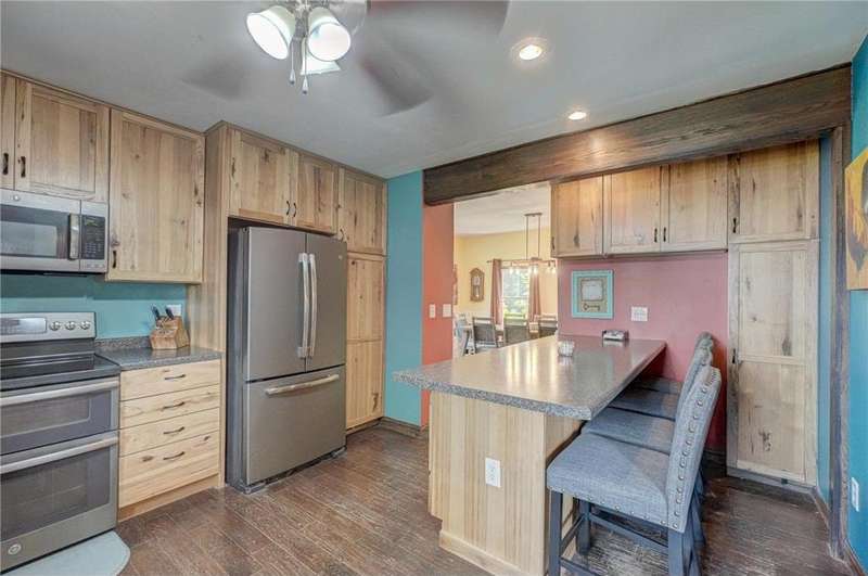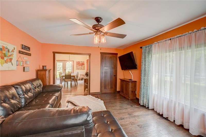 Enjoy country living on 12+ acres with this spacious 4-bedroom, 2-bath home. The updated kitchen flows into an extra-large dining room and family room—plenty of space to host holidays, parties, and gatherings. Your home will be the new destination for family get-togethers, with room for everyone, inside and out. Relax on the front porch, watch the sunset, and enjoy your wooded surroundings. Large windows throughout let in natural light and provide views of the trees and privacy this property offers. Outside you’ll find a pole shed and a machine shed, perfect for storage, hobbies, or equipment. A wonderful blend of comfort, space, and country charm. Shed sizes 70X38 60X32