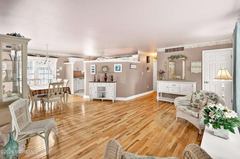 This home combines warmth, functionality, and a great location. Welcome to this inviting 3-bedroom, 2-bath ranch nestled in a desirable community featuring 3 lakes and nearby parks. Sitting proudly on an oversized corner lot, this home offers an open and airy feel with beautiful hardwood floors throughout. At the heart of the home is a bright white kitchen, perfectly situated for gatherings and everyday living. A spacious family room with a cozy fireplace sits just off to the side ideal for entertaining or even serving as a fourth bedroom if desired. Step outside to enjoy a large covered porch, extending your living space for relaxing or entertaining year-round.