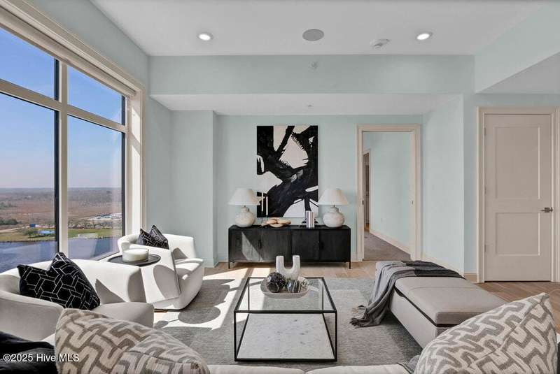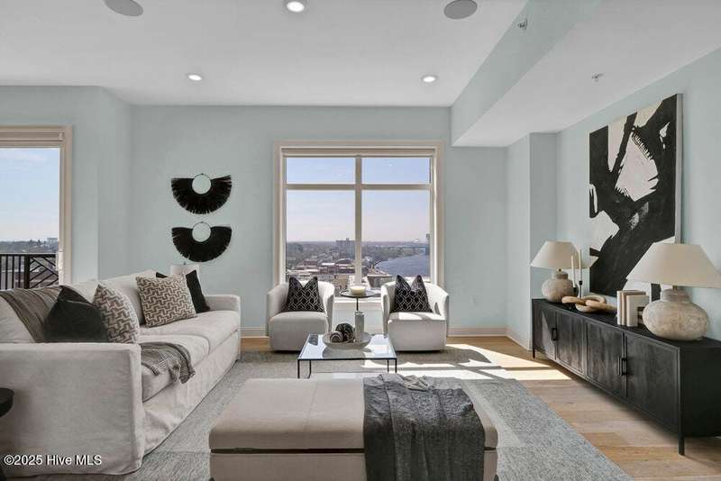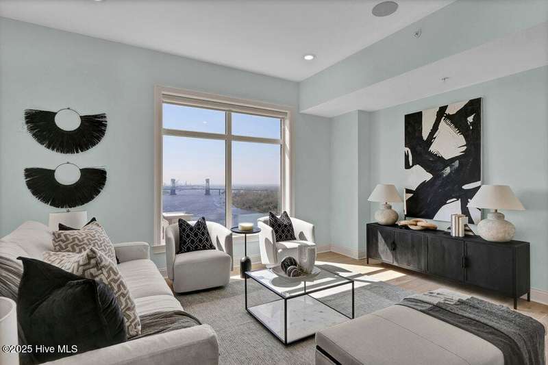 Stunning PENTHOUSE in River Place Condominiums with sweeping water views of the Cape Fear River and fantastic cityscape of Downtown Wilmington. Filled with an abundance of natural sunlight throughout this picturesque vista will dazzle you! Modern open kitchen with quartz countertops, eat-in island, soft close cabinetry, pantry, built-in drawer style microwave, Kitchen Aid appliances and a half bath at entry. Study/office could be utilized as an additional guestroom or bonus room. Private balcony overlooks both city and river perfect for morning coffee, evening bubbly and entertaining. This custom floor plan is move-in ready with motorized shades, washer, dryer, and conveys with two side-by-side assigned/reserved parking spaces in River Place Parking Deck. Amenities include ground floor lobby with concierge service, a well-appointed private owners lounge with wet bar, billiards room, secure-keyed entry. Amenity terrace includes pool, hot tub, fire pit, outdoor shower, grills and entertainment area with a fully equipped fitness room. Enjoy all of the conveniences of living Downtown. Listing agent must be present for all showings.