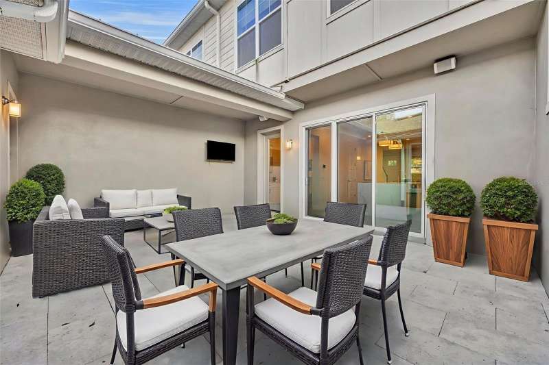 One or more photo(s) has been virtually staged. Modern Comfort in the Heart of Winter Park! Built in 2019, this 3-bedroom, 2-bath, 1,798sf townhome offers the perfect blend of convenience and contemporary style in a private 12-unit community. Light and bright with high ceilings and tile floors, the open-concept living area features a quartz island kitchen with Samsung appliances, solid wood cabinetry, and a retractable sliding door that opens to a walled courtyard—ideal for dining and entertaining. Upstairs, you’ll find the spacious primary suite, two additional bedrooms, a secondary bath, and a laundry room. Additional features include a downstairs custom closet, upgraded sound system with subwoofer and speakers throughout the main living areas and patio, central vacuum, security system, and an attached two-car garage. Enjoy low-maintenance living close to I-4, College Park, Park Avenue, shopping, and dining.