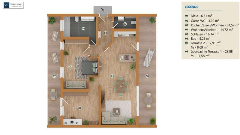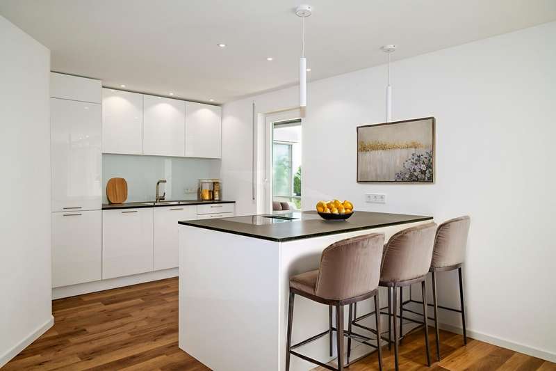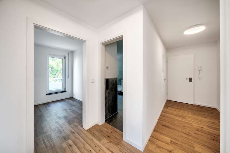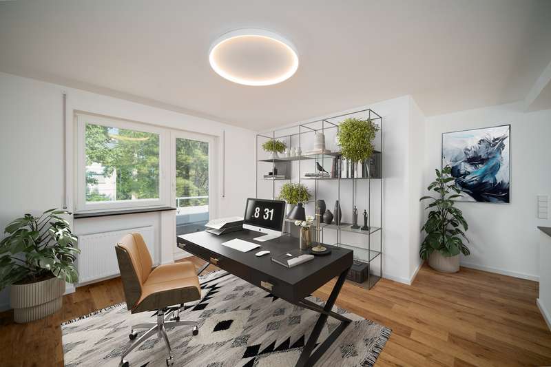 This exclusive penthouse apartment in a well-kept building from 1969 offers you a unique opportunity to experience stylish living on approx. 105 m² of living space. The apartment was extensively renovated in 2023/24 and presents itself in an upscale condition that fully meets modern requirements. It is located on the 2nd floor of an apartment building with only 9 residential units and has 2 large terraces with fascinating views. The 3.5 room apartment impresses with its intelligent room concept. The spacious living and dining area is the heart of the apartment and offers plenty of space for cozy get-togethers. Large windows flood the room with natural light and create a friendly and inviting atmosphere. From here, you have direct access to a spacious south-east-facing terrace, which is perfect as an outdoor retreat. The modern daylight bathroom with floor-level shower is fitted with high-quality materials and has a sophisticated lighting ambience. Stylish fittings and a timeless design create an appealing feel-good atmosphere. The bathroom is complemented by a separate guest WC. There is also a spacious bedroom in the apartment with access to the north-west-facing terrace, which offers plenty of space for relaxation and recreation. The room design allows for the integration of a spacious closet or dressing area. A further open room offers flexible usage options, whether as a home office, guest room or hobby area. From here you also have access to the large north-west-facing terrace. The apartment offers plenty of sun and shade thanks to the two terraces facing different directions, perfect for all seasons. Our cozy apartment is ready for immediate occupancy and is easily accessible via a stair lift, so you can move around effortlessly and safely. It offers you the opportunity to reduce your living space and still live independently and comfortably. It is therefore perfect for older people looking for an age-appropriate solution, as well as for singles and couples. An important factor when choosing a property is the location. The building is located in an established residential area with an excellent infrastructure. Stores for daily needs, public transport and leisure facilities are all within easy walking distance. You also benefit from good connections to the city center and surrounding towns. The upscale furnishing quality of this apartment is underlined by carefully selected materials and a harmonious color concept, which ensure a harmonious overall picture. The furnishings and room layout have been designed with comfort and functionality in mind. Please note that we have furnished the rooms virtually. A separate, lockable garage parking space is available for your car, which can be purchased for € 27.000.- can be purchased. This well-kept penthouse apartment combines all the features you need for a comfortable and sophisticated living experience. We look forward to offering you a new home that meets your wishes and needs.