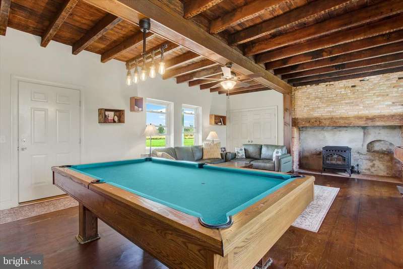 Updated & Restored Farmhouse on 10 Acres in Northern York School DistrictThis beautifully updated and completely restored farmhouse is situated on 10 acres enrolled in Clean & Green, offering valuable tax savings. Located in the sought-after Northern York School District, the property features a little over 6 acres surrounding the main home, with the remaining acreage conveniently located across the street.Inside, you'll find a bright, open floor plan with spacious rooms, abundant closet space, and thoughtful updates throughout. The large kitchen is a true centerpiece with quartz countertops, recessed lighting, two pantries, and a gas cooking range. The oversized dining room, complete with a fireplace, is perfect for entertaining. The heart of the home is the inviting living room featuring exposed wood beam ceilings, hardwood floors, and a cozy pellet stove. A convenient half bath completes the main level.Upstairs, the expansive primary suite offers a walk-in closet and private bath with double vanities. Two additional bedrooms, a hallway full bath, and a second-floor laundry provide comfort and convenience. A walk-up third floor offers additional storage options.Additional highlights include updated electrical and plumbing, dual-zone heating and cooling, and an oversized detached two-car garage with electric service.With its blend of historic charm and modern updates, this farmhouse provides the best of both worlds?peaceful country living with modern amenities.