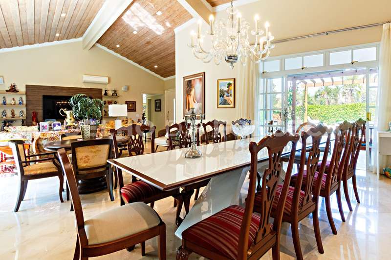 Com sala ampla e integrada à área de lazer e piscina, a casa tem muita iluminação natural todo o dia.