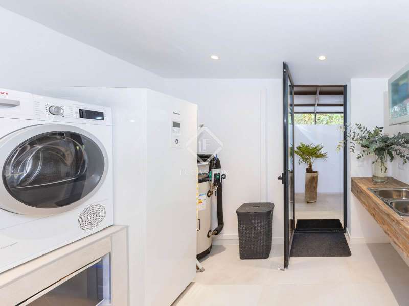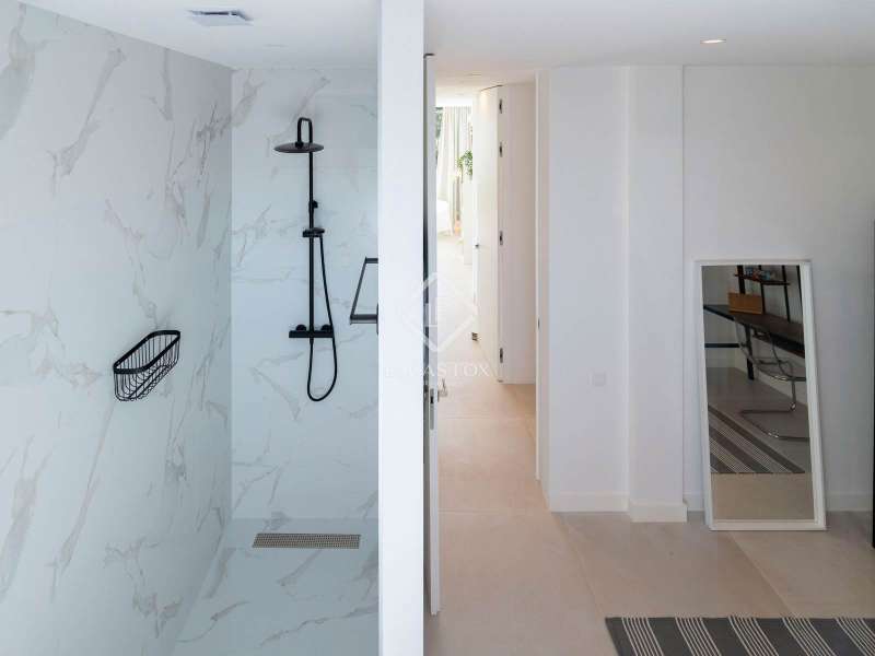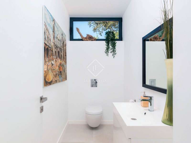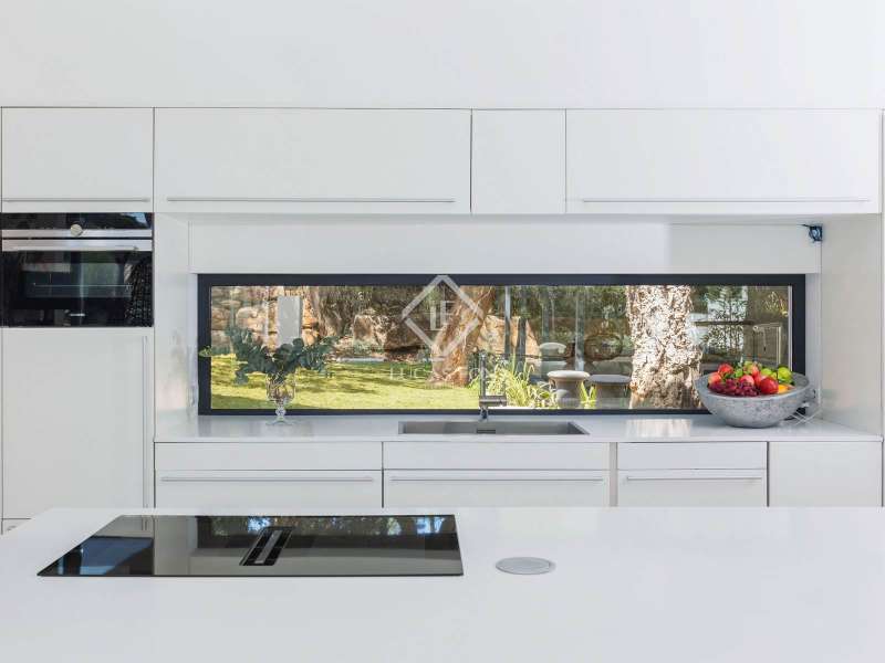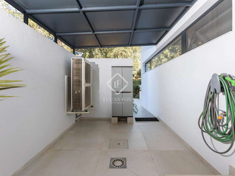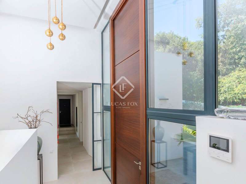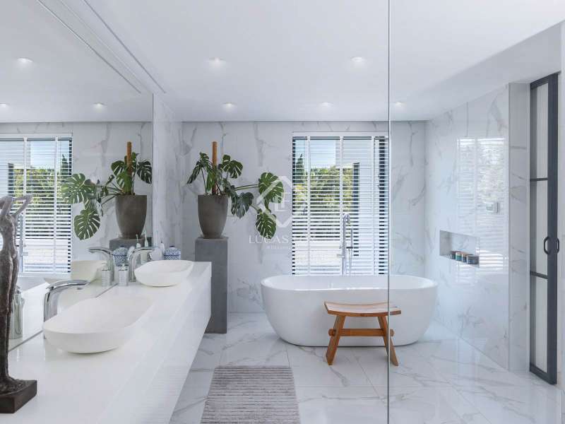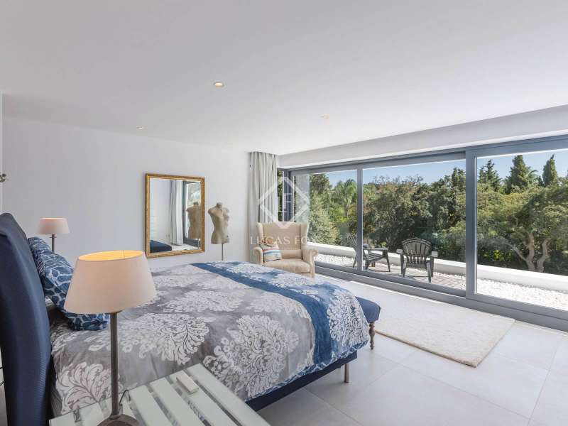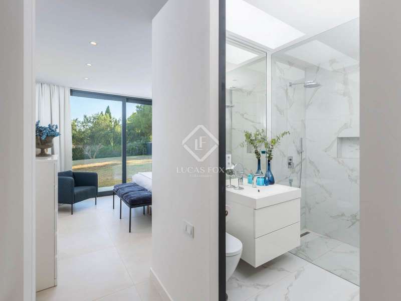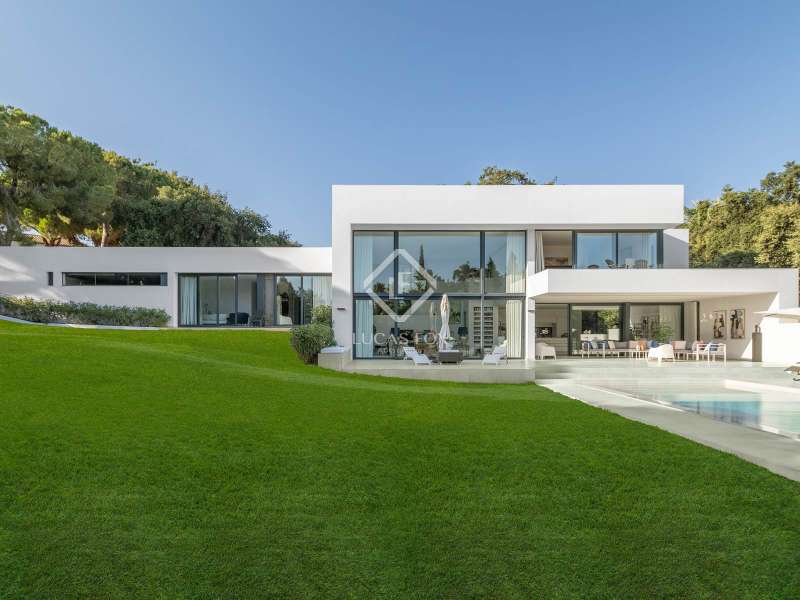 This stunning villa sits on a generous 2,045-square-metre plot, nestled in a quiet cul-de-sac in the highly sought-after Zone D of Sotogrande. A charming pathway, lined with majestic oak trees, leads you to a grand four-metre-high wooden entrance door. Upon entering, we are captivated by the spaciousness, high ceilings, and expansive windows that offer breathtaking views of a private, lush garden and a beautiful pool. One wing of the villa features three bright double bedrooms, each with its own en-suite bathroom, benefiting from natural light through large windows and skylights in the bathrooms. This wing also includes a spacious double garage, a storage area, and a practical laundry room with an outdoor covered patio. The other wing houses an elevated open-concept office space with panoramic views, as well as a spectacular main bedroom, complete with a spacious walk-in wardrobe and a spa-style bathroom, featuring a floating bathtub and a rainfall shower. The living area seamlessly connects to a contemporary kitchen and dining space, which open onto two inviting outdoor areas. At the rear, there is a cosy covered dining and barbecue area, while at the front, a large terrace extends towards a breathtaking infinity saltwater pool. Additional features include an aerothermal underfloor heating and cooling system, ambient lighting, and much more. Please contact us for further information.