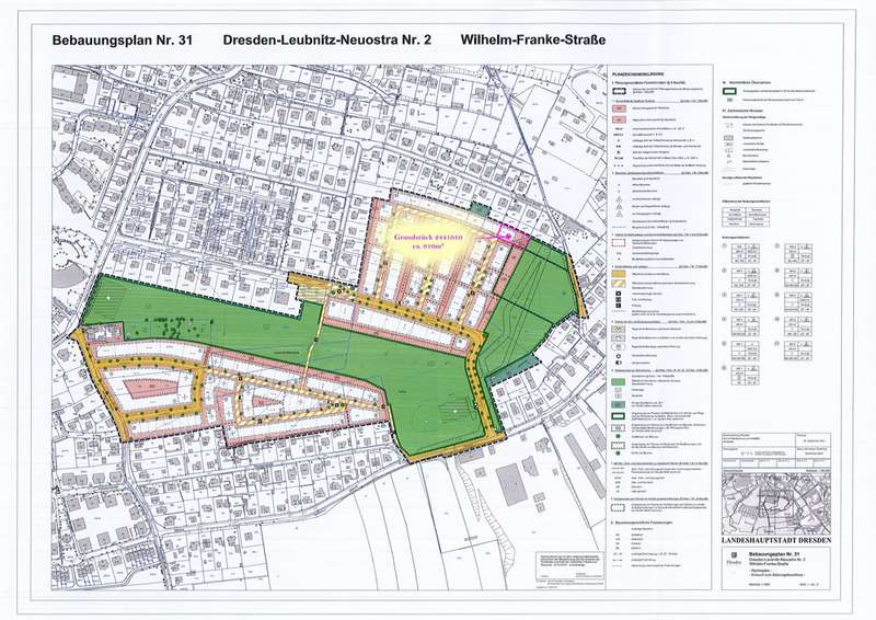 In a sought-after residential location in the south-east of the state capital, this approx. 910 m² building plot presents itself as a special opportunity. If you would like to realize your individual dream home close to the city center, the optimal orientation promises you wonderful sunshine all day long and, thanks to its peripheral and slightly sloping location, you can enjoy a fantastic panoramic view. Access is via a traffic-calmed residential road, so there is no direct through traffic and you live in pleasant peace and quiet with plenty of space and privacy. Despite this wonderfully quiet location with views towards Saxon Switzerland, the charming village center and public transport connections are within walking distance. The buildability of the property is regulated according to the existing development plan Leubnitz-Neuostra No. 31 of the city of Dresden. Accordingly, it is possible to build a detached house on the plot. Whether bungalow or town villa, both are possible. The following dimensions must be taken into account: Floor area max. approx. 120 m², eaves height max. 3.60 m, up to a maximum of 2 full storeys, with a choice of gabled, hipped or tent roof and a roof pitch of 25° to 45°. We will be happy to organize architectural planning for your future detached house on request. The plot is being sold without a developer commitment. The development is carried out by a developer and amounts to approx. 252€ per m² (basis for negotiation). These costs are not part of our offer and must be planned in addition. So that you have to calculate with approx. 508.000 € total costs for the property incl. development.