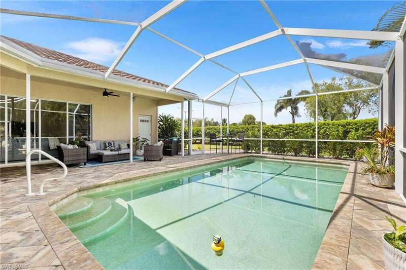 SMART LUXURY in Cross Creek Estates! This 4BR/3BA single-story pool home with an expanded 3-car garage has over $300K in recent upgrades! Nearly 2,500 sq ft under air, split floor plan with second suite and pool bath, tile throughout, marble living room, and the NW exposure provides refreshing morning sun and fiery, picturesque sunsets. NO FLOOD INSURANCE REQUIRED! NO CDD! ULTRA LOW HOA DUES! Amazing Upgrades: 2020-stone-coated steel roof, exterior repaint, impact leaded-glass entry, whole-home water filtration system, custom kitchen cabinets with granite counters, all bathrooms upgraded (frameless glass, quartz counters, LED backlit & heated mirrors), whole-house repipe to PEX, new bedroom tile, pavers driveway/lanai/pool deck. 2023-Samsung Bespoke appliance package (~$10K), all interior light fixtures updated, Tesla charger in garage. 2024-smart exterior trim lighting (permanent app-controlled color-changing holiday lights), smart irrigation/sprinkler system. 2025-LED pool light, new pool pump and filter housing, new water heater, full interior repaint. Community: Cross Creek Estates offers resort-style amenities- gated entry with virtual guard, clubhouse, heated & chilled community pool/spa, steam rooms, pickleball, tennis, bocce, dog park, playground and a newly expanded gym; optional golf membership approx. $1,000/yr at Cross Creek Country Club. Minutes to RSW, beaches, shopping, dining, and two spring-training stadiums. Don't snooze on your chance to secure this BEST VALUE BUY and finally start living your best SWFL life in this UPSCALE GEM!