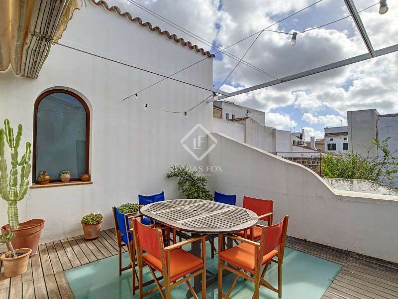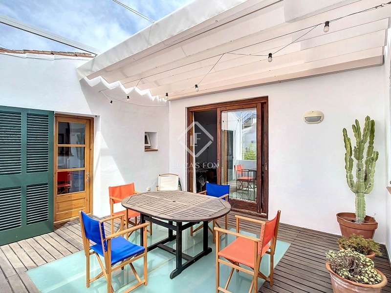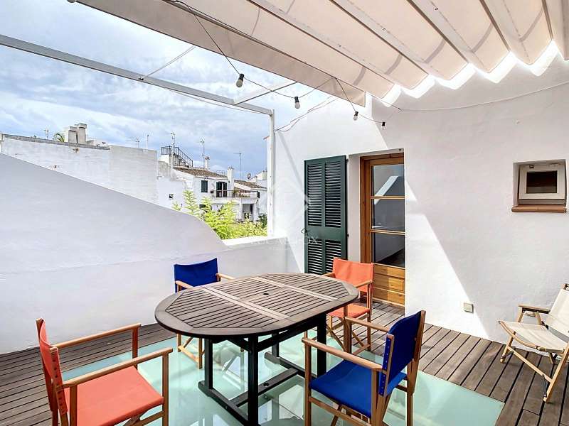 Lucas Fox presents this wonderful duplex located on the first floor of 173 m² in an old house in the heart of the historic center of Ciutadella, very close to palaces and with views of its gardens. The property is distributed over two floors. The ground floor 133m² welcomes us with a large entrance hall, a fully equipped separate kitchen and a living-dining room with lots of natural light. Both rooms have access to a beautiful 18 m² terrace with a canvas awning to enjoy evenings with family or friends, with beautiful views of the gardens of the Sintas Palace. This floor is completed by a very spacious main bedroom , another single bedroom , a full bathroom and a utility room. Through a comfortable wooden staircase with a door at the entrance, we reach the attic upper floor 40,30m² where we find a double bedroom with a private bathroom, ideal for guests. The house was completely renovated with high quality materials and has hot and cold split air conditioning in all rooms. The entire property is exterior and offers very beautiful views of the Sintas Palace, as well as extraordinary tranquility. At the entrance of the building, we have a storage room, ideal for bicycles and storing any belongings. Without a doubt, an ideal property to live all year round in the historic centre of the city or spend time with family and/or friends. Contact us for more information or to arrange a visit.