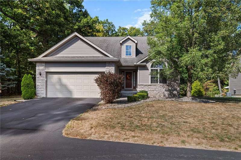 If it's all about location, this is the one!! This is a one-owner, stand alone condo in the prestigious Pierce Bluffs development. There is a full, walkout basement ready to be finished and plumbed for a bathroom. The 3rd bedroom could be an office or sunroom. The garage has a Nature Stone floor. There is room for a full dining room. The dining area attached to the kitchen opens to a rear deck overlooking the woods & walking trail. The primary bath has been remodeled in the past few years.