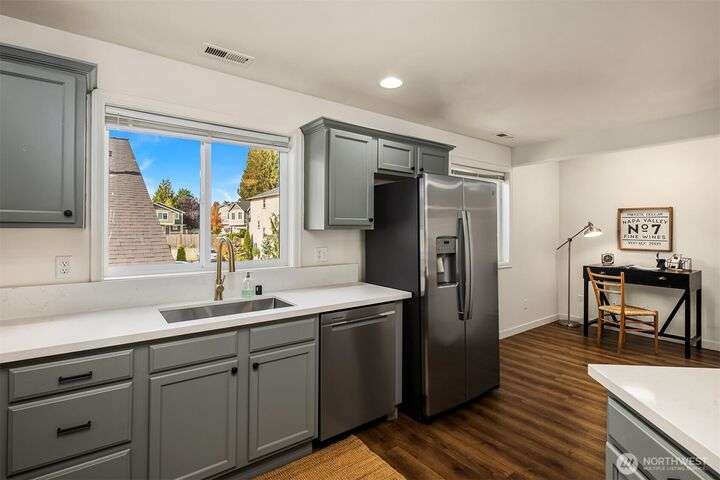 At the crossroads of Everett, Mukilteo, and Lynnwood, this spacious home blends modern updates with low-maintenance living. With 2,200+ sq. ft., 3 bedrooms + den and a large lower-level bonus room (potential 4th bedroom), there’s room for everyone to spread out. Enjoy the open-concept layout, new flooring, paint and countertops, plus 2 fireplaces. Multiple outdoor spaces—a balcony and fenced patio. A 2-car garage and extra parking add everyday convenience. Pre-inspected and move-in ready with stainless appliances & quality finishes. Easy access to I-5, 405, and 99, plus Mukilteo’s award-winning schools, shopping, and parks. Convenient proximity to Boeing & Paine Field. All the space and updates you want without giving up location or value.