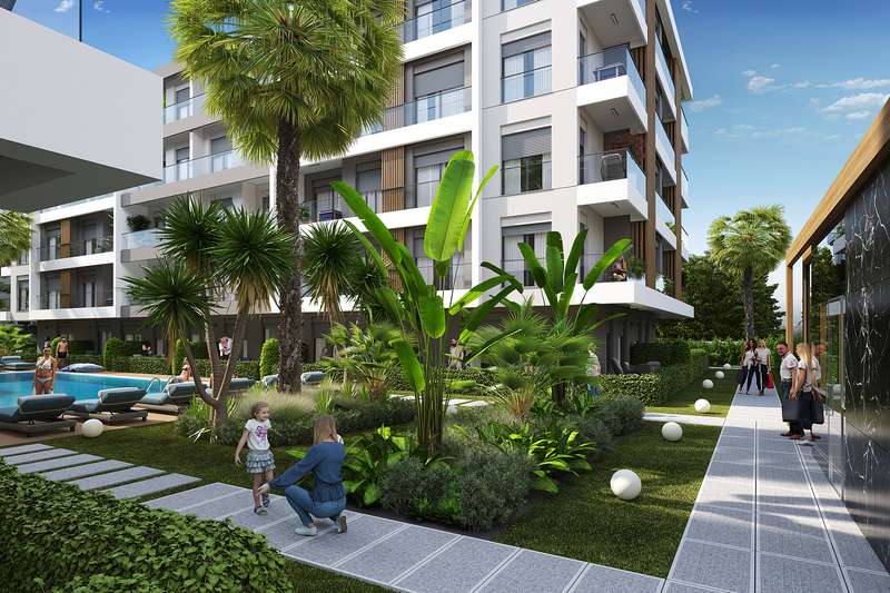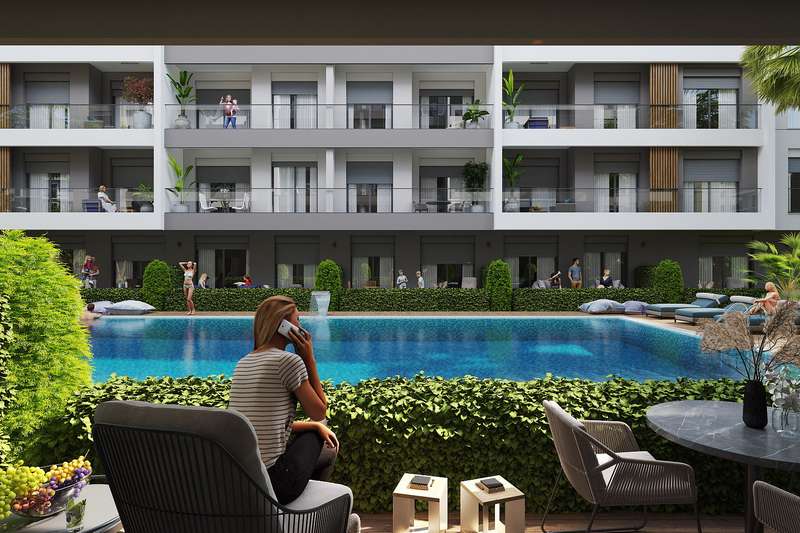The apartments for sale in Izmir are 150 m from the main street with cafes, 300 m from the sea and the promenade walking road, 500 m from the tram stop, 600 m from Bostanli market, 1 km from the hospital, 2 km from the open-air theater, 2 km from the shopping center, 2 km from Bostanli ferry pier, 14 km from Izmir Kordon and Alsancak, and 30 km from Adnan Menderes Airport.