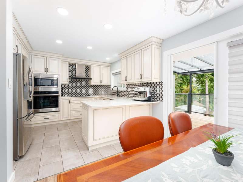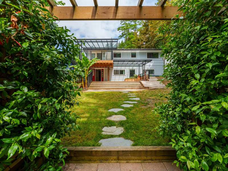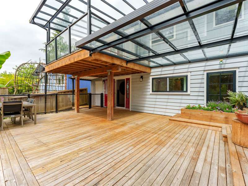 Over 10,000sf of private lot with fully renovated home. Virtually a new home. Newer roof, new instant hot water tank, renovated upscale kitchen and washrooms, newer appliances, all new windows, daylight walkout basement, bar (or second kitchen) below, entertainment sized covered decks up and down, beautiful landscaping, walls replaced, plumbing and electrical replaced. Parking via back lane on a huge rear lot big enough for over 10 cars, RV and a boat all together, two big sized sheds in back. Central location with private setting. Backing on to greenbelt like city land. Bonus SSMUH with maximum 6 units per lot as per city guidance (Buyer to inquire and confirm with City for details)
