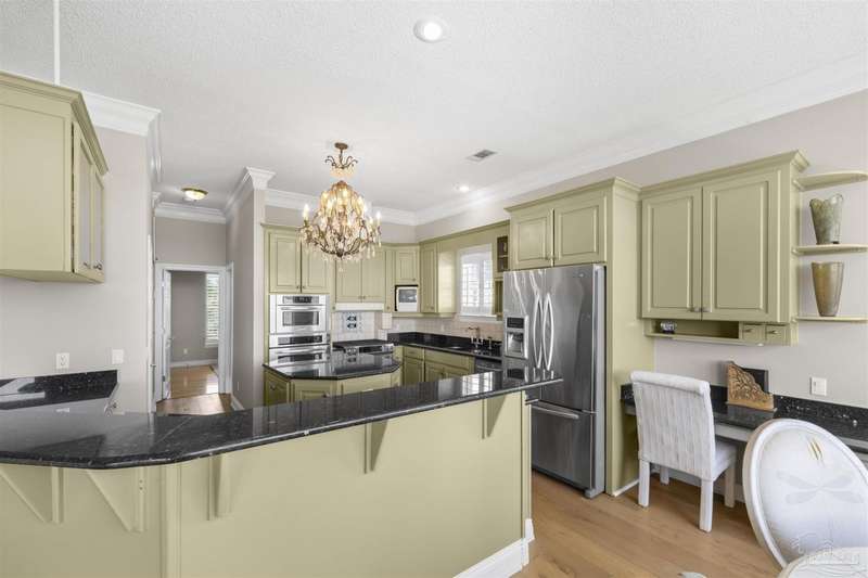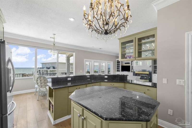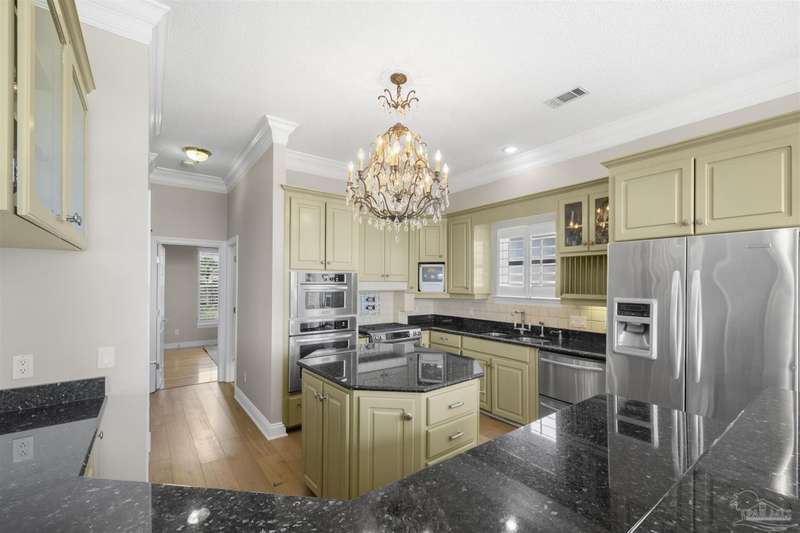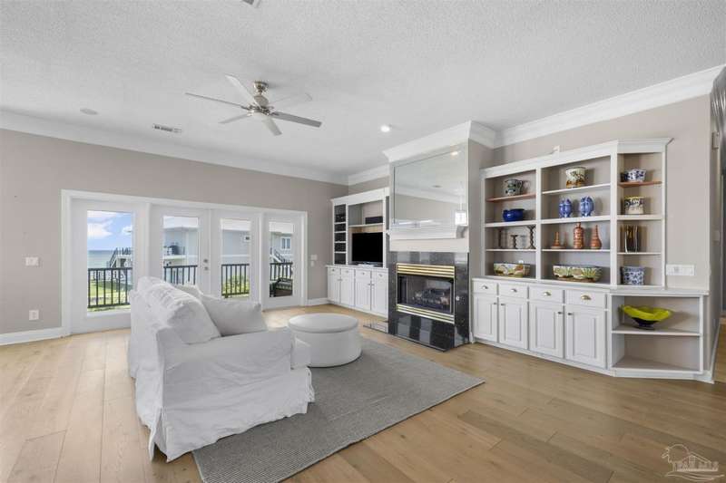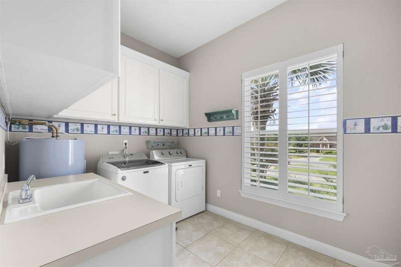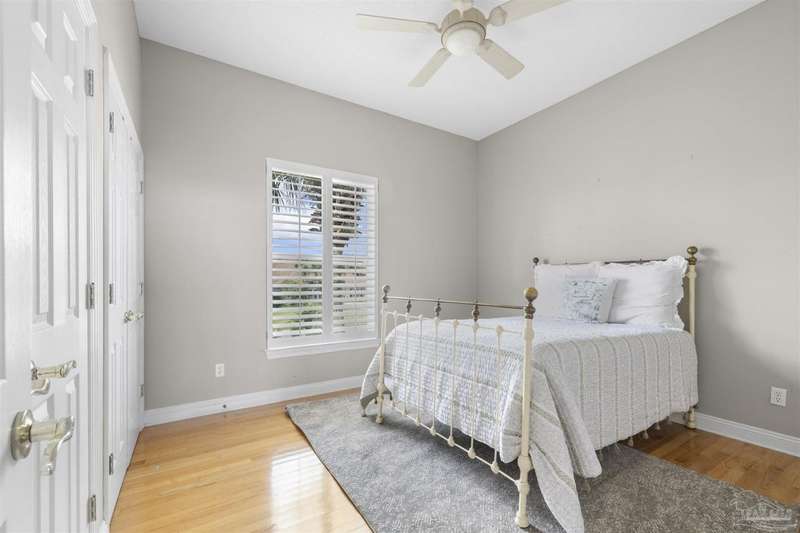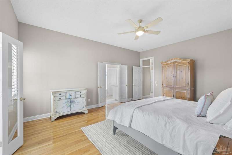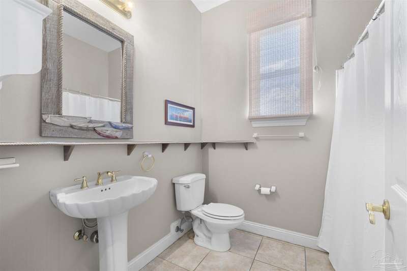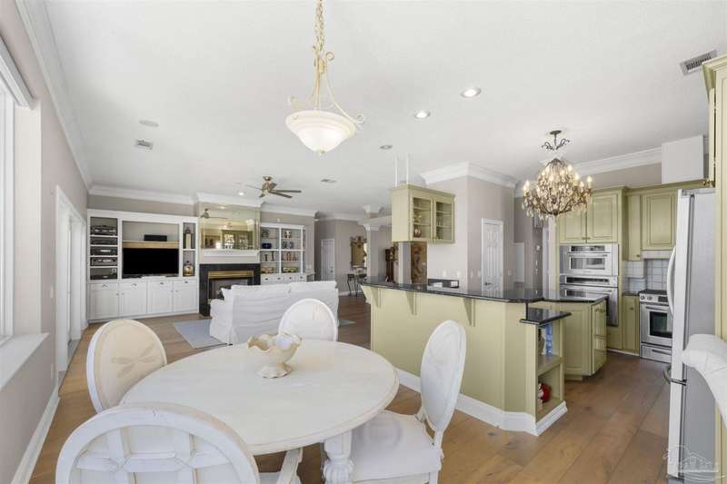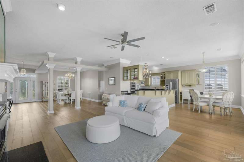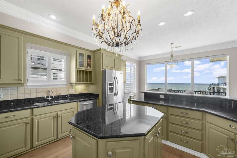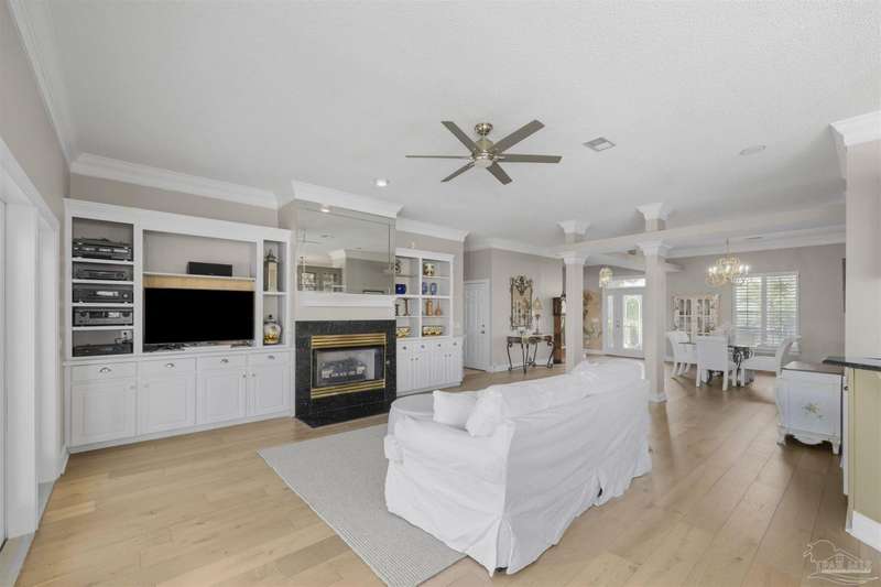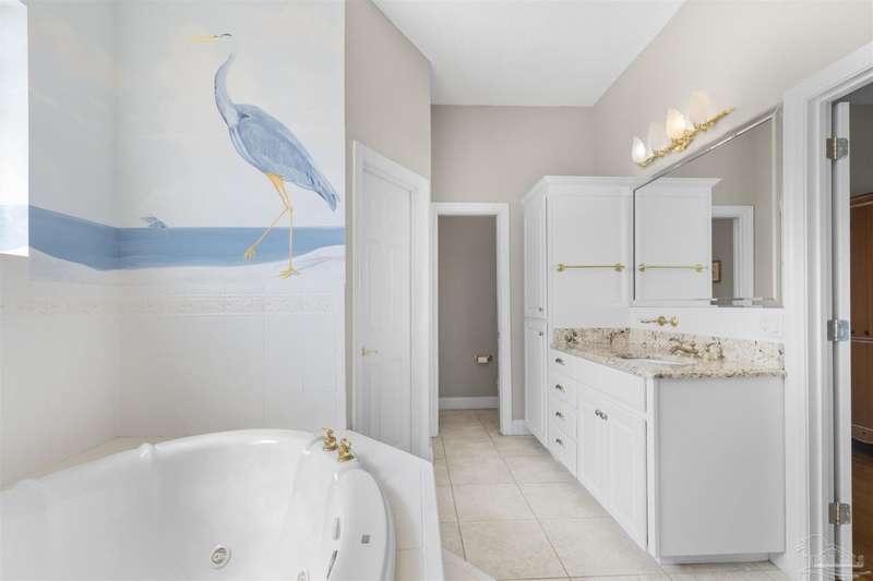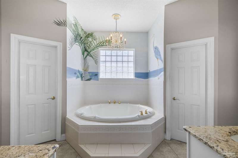 Welcome to your slice of Gulf Coast paradise-this spectacular 3-bedroom home offers graceful waterfront living with every upscale touch. Nestled in a sought-after gated neighborhood, the property boasts expansive porches with breathtaking water views, a walkway to a private beach, and your very own swimming dock, perfect for morning paddles or sunset serenity. Inside, rich oak wood floors add timeless warmth throughout. The master suite is a sanctuary of comfort with an attached sunroom or office, opening directly onto the porch overlooking the water. The spa-like bath features a double vanity, jetted tub, walk-in shower, and private water closet. The kitchen pairs form with function-granite countertops, stainless steel appliances, and a charming dumbwaiter add modern elegance. A spacious bonus room on the third floor wraps you in light with panoramic Pensacola Bay views, ideal as a media room, art studio, or peaceful hideaway. Outside, a circular drive leads to the oversized side-entry garage, offering ample space and convenience, while the durable metal roof completes the picture of longevity and coastal resilience. With its captivating views, thoughtful layout, and premium finishes, this home is your gateway to tranquil waterfront living. Schedule your private tour and experience Windrose Circle for yourself.