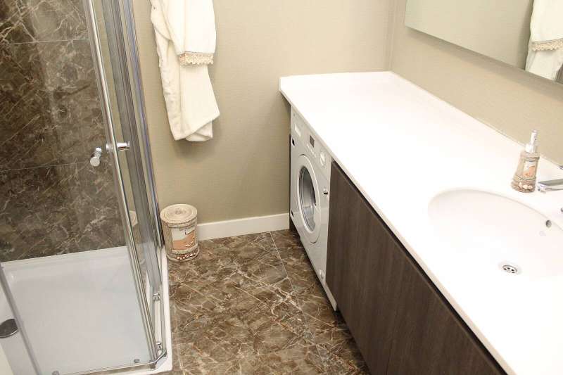 City-view flats include a bedroom, living room, separate kitchen, bathroom, en-suite bathroom, dressing room and balcony. Flats are equipped with a shower cabin, a high-quality built-in kitchen set, laminate flooring and wet flooring, wallpapers, fire extinguishing system and a central heating system. ;