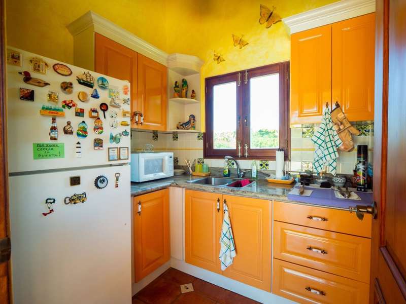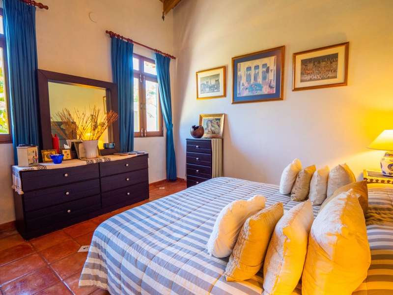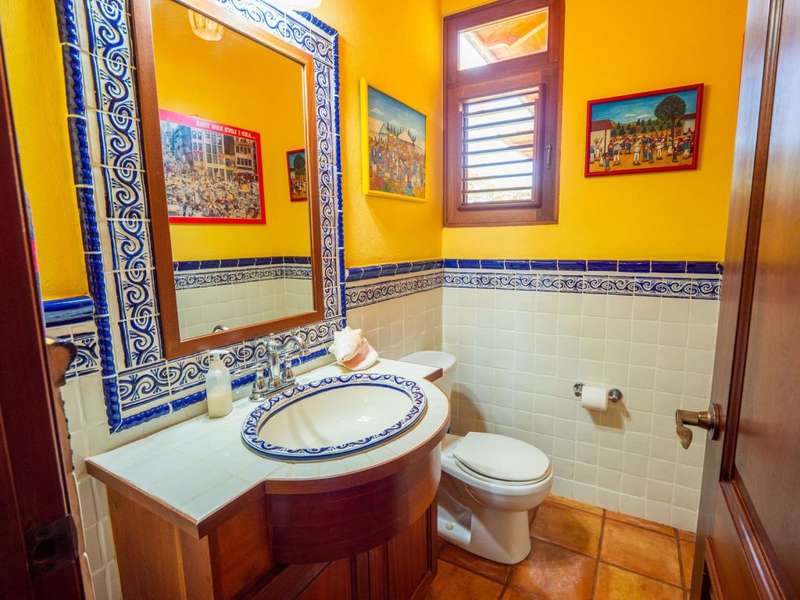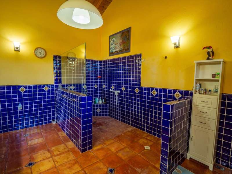 The guest house by the pool has a half bath off the pool deck with a covered terrace of 63 square meters and a small kitchen.