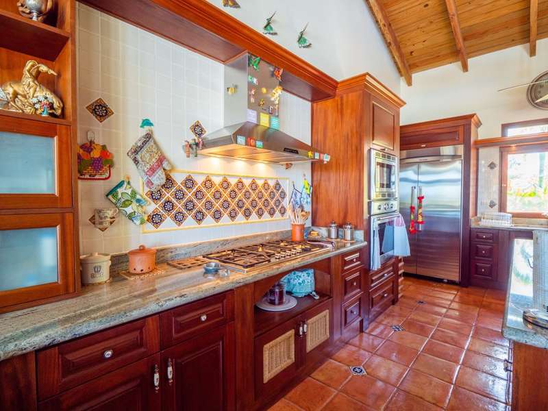 The property has beautiful land of 11,200 square. The house itself has a size of 425 square meters with Mahogany windows and doors with large overhangs and high ceilings.